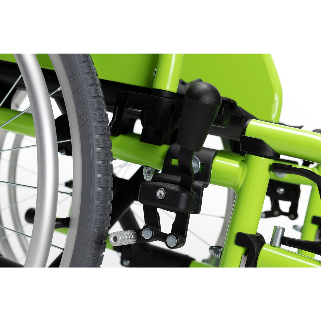 Dankzij de quick release achterassen zijn de achterwielen en beensteunen eenvoudig te verwijderen, waardoor de rolstoel compact en gemakkelijk te transporteren is. Dit maakt de Jazz S50 Kids bijzonder geschikt voor dagelijks gebruik in huiselijke situaties, maar ook voor verhuur of uitleen, bijvoorbeeld via zorginstellingen of dealers.