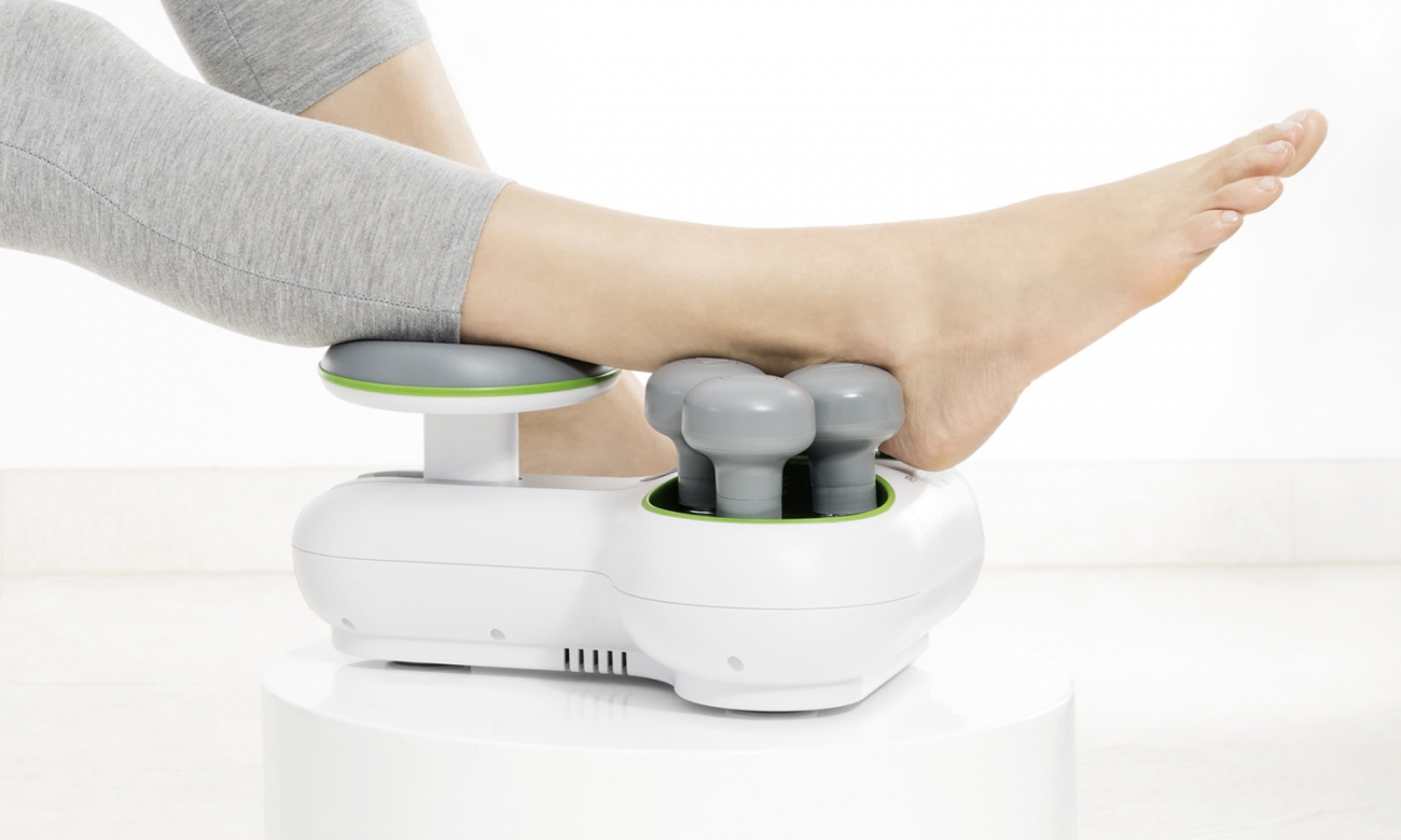 Massageapparaat voor het verlichten van pijn- en spierklachten bij de achillespees. De rustgevende massage van de achillespees stimuleert de bloedsomloop. Inclusief 6 roterende massagekoppen, 2 instelbare massagesnelheden, 2 instellingen voor de massagerichting en aanpasbare hoogte en breedte.