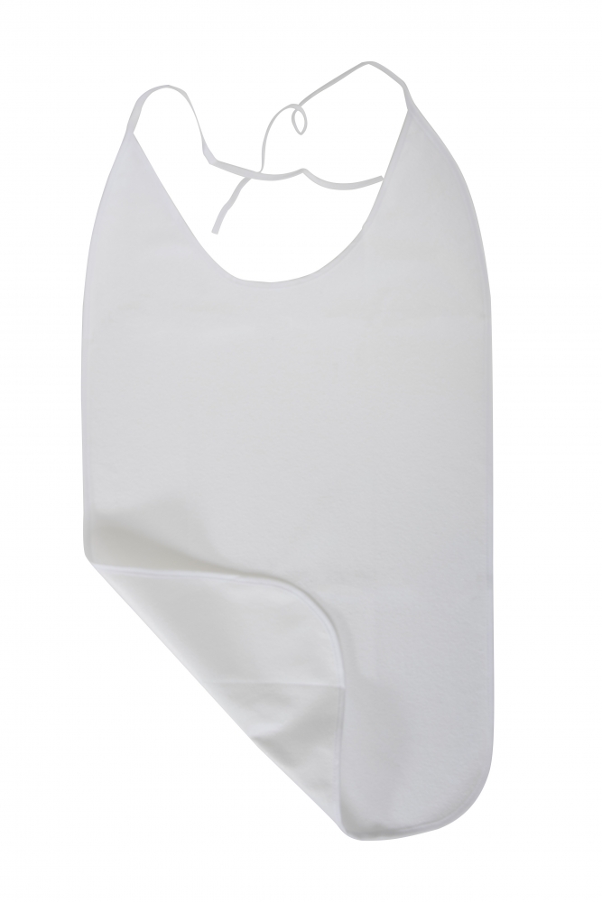 Bescherming tegen morsen. Heeft een badstof voorzijde en een vinyl achterkant.