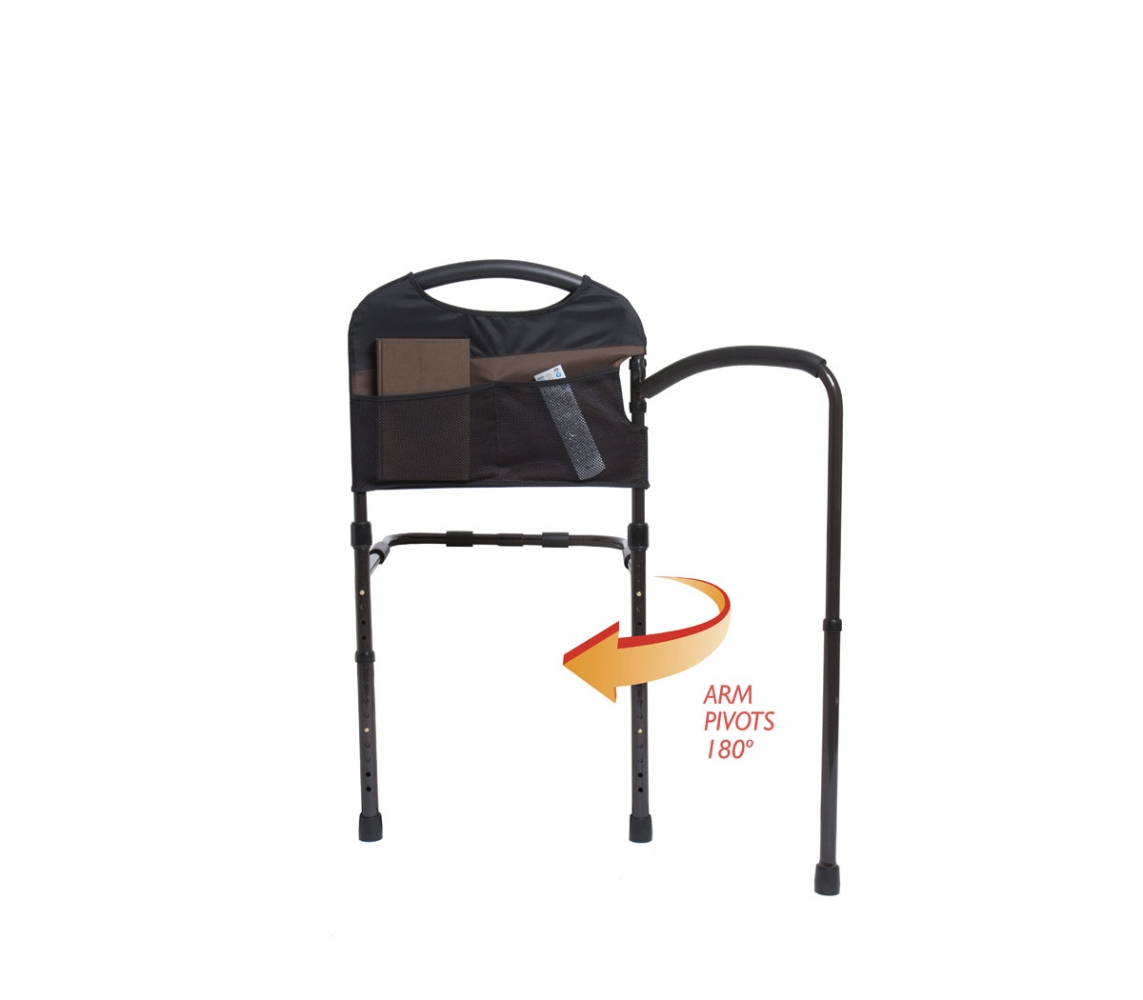 Deze bedsteun Mobility heeft een zwenkbare handgreep. Hiermee kom je eenvoudig in en uit bed. De poten van het bedhek en de handgreep zijn in hoogte verstelbaar. Verder zit er een handige opberghoes bij met 4 vakken. De bedsteun is geschikt voor boxsprings en bedden zonder bedplank.