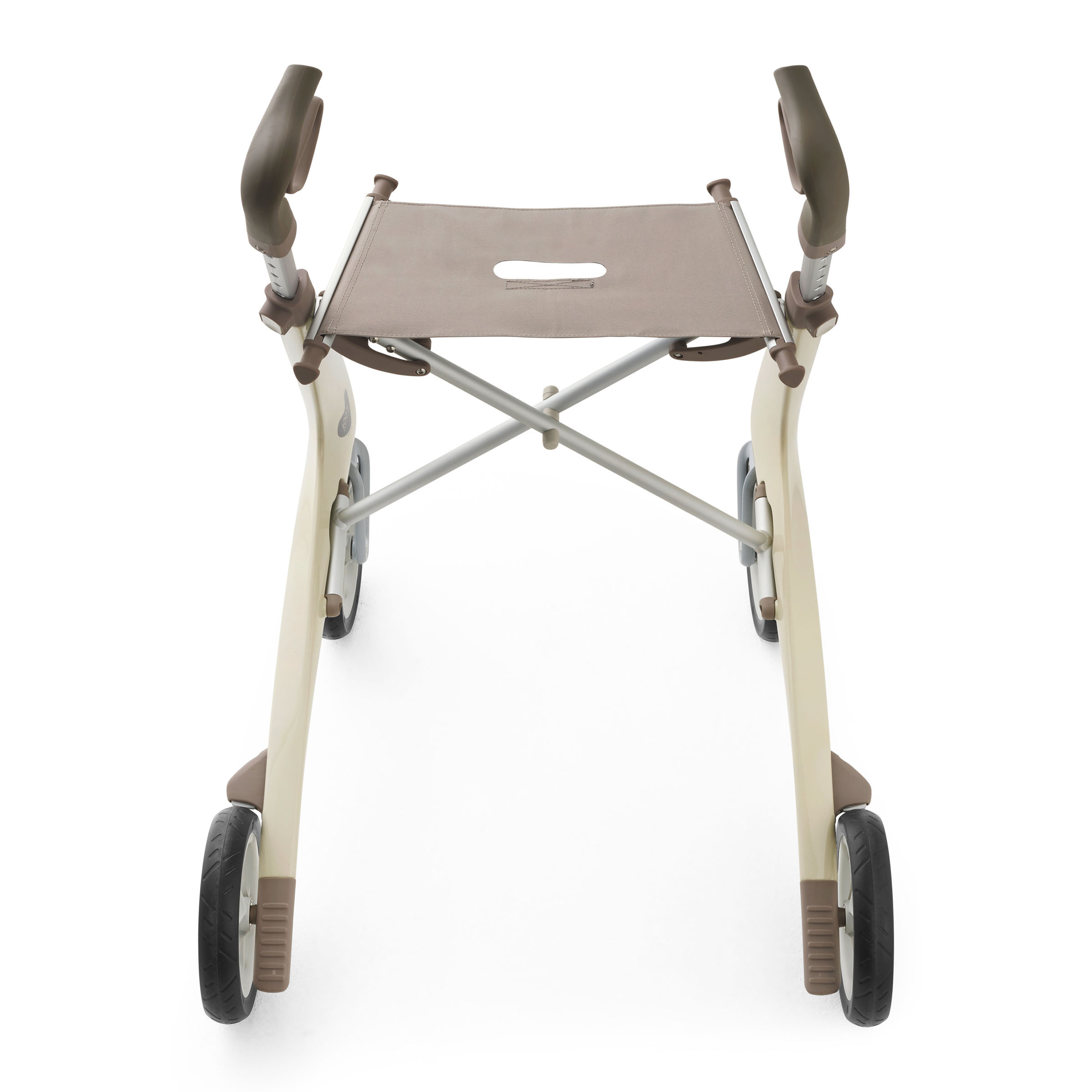 De rollator wordt volledig voorgemonteerd geleverd – uitpakken, uitklappen en direct op pad.