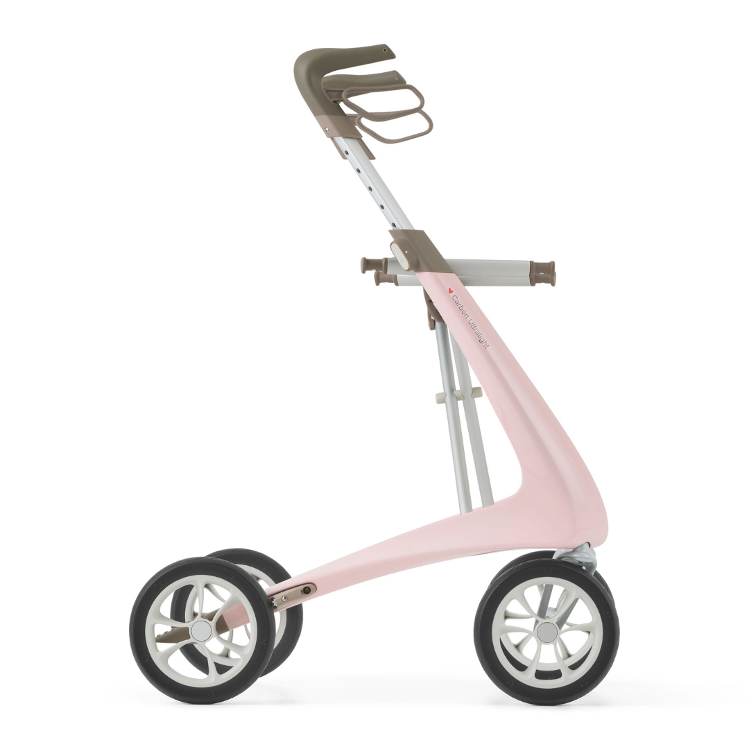 Hoewel de Carbon Ultralight bij uitstek een outdoor-rollator is, functioneert hij binnenshuis net zo goed. Hij rijdt moeiteloos over drempels en past door standaard deuropeningen. Voor buitenavonturen zijn de grote wielen ideaal om grindpaden, trottoirs en stoepranden te trotseren.