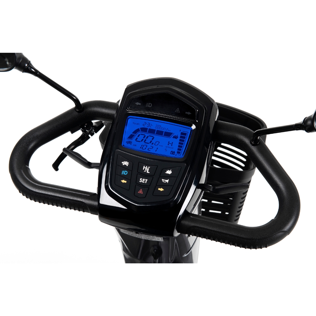 De Carpo 4D is compact en wendbaar, met een korte draaicirkel van 3160 mm, wat hem ideaal maakt voor gebruik in kleinere ruimtes, zoals winkels of smalle straten. De scootmobiel biedt uitstekende stabiliteit dankzij zijn 4-wiel ontwerp, wat zorgt voor extra vertrouwen tijdens het rijden.