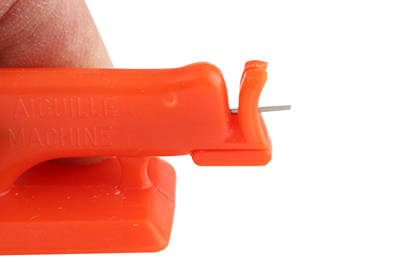 Plaats het apparaat tegen de naaimachinenaald, leg de draad neer, druk op de knop en trek de draad door. Een handig hulpmiddel voor iedereen.