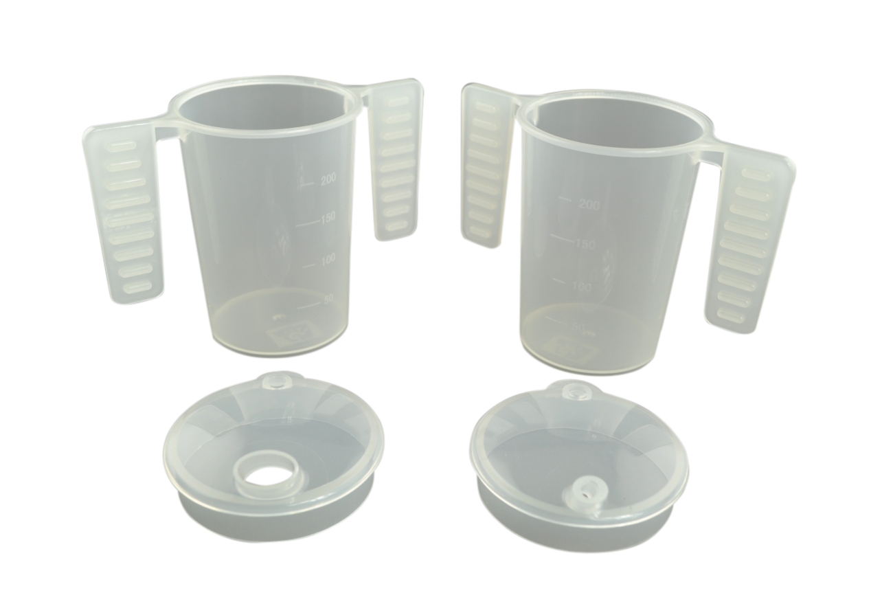 Drinkbeker met platte handgrepen en twee tuitdeksels