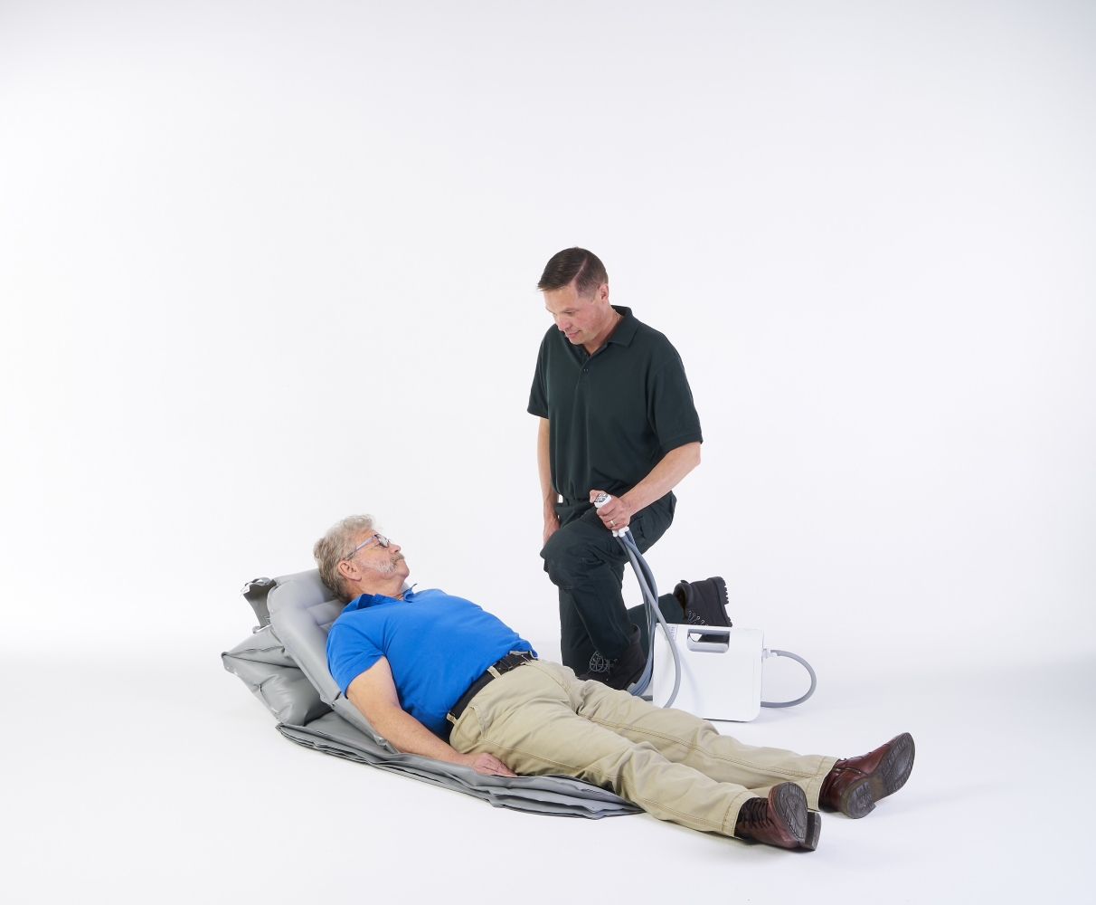 Dit tilkussen is speciaal ontworpen voor zorgverleners om personen op een veilige en waardige manier van de grond op te tillen. De gevallen persoon kan op het kussen schuiven of worden gerold, wordt vervolgens geholpen om rechtop te gaan zitten en weer op te kunnen staan. Het tilkussen werkt op een accu en kan eenvoudig worden opgeblazen. Het tilkussen vermindert de risico’s van het verplaatsen en tillen van patiënten en verlaagt de kans op letsel voor professionele zorgverleners. Na gebruik het kussen leeg laten lopen, opvouwen en opbergen. Makkelijk mee te nemen. Geschikt voor gebruik binnen- en buitenshuis.