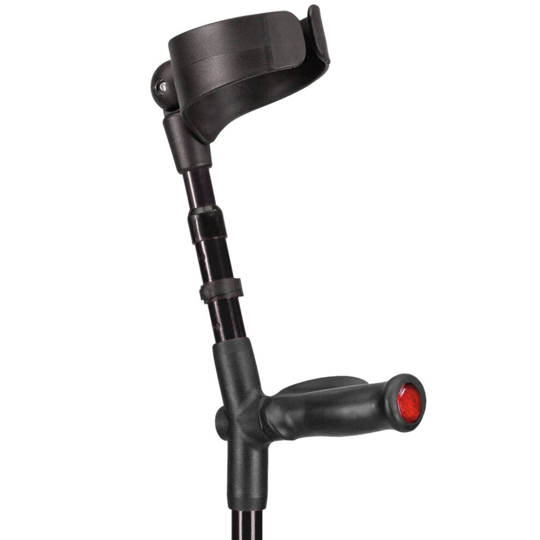 Lichtgewicht en sterke elleboogkrukken met ergonomisch handvat en gesloten manchet voor extra comfort en stabiliteit. Verstelbaar in hoogte en geleverd per paar. Verkrijgbaar in drie kleuren: aubergine, zwart en metallic blauw.