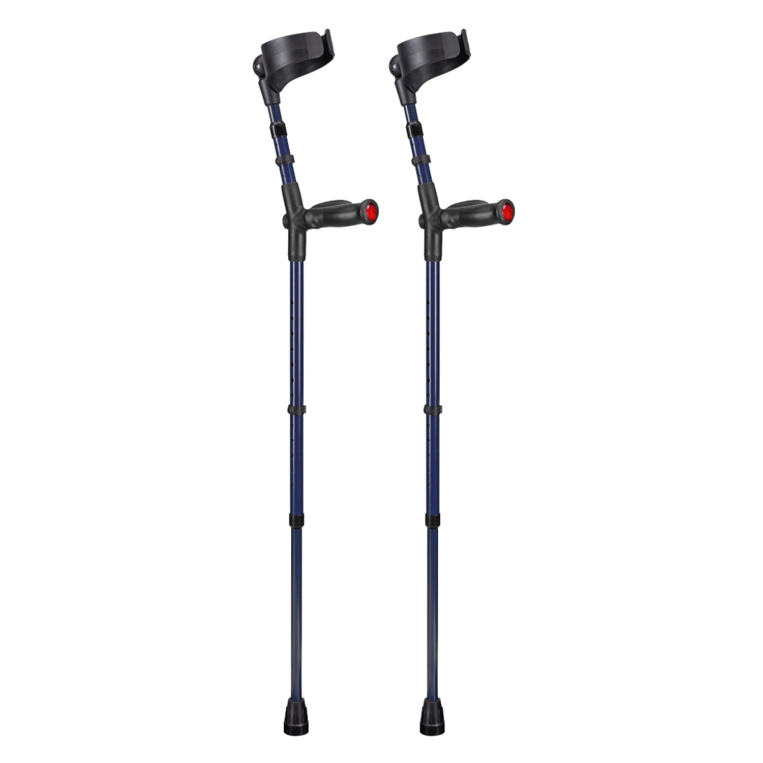 Lichtgewicht en sterke elleboogkrukken met ergonomisch handvat en gesloten manchet voor extra comfort en stabiliteit. Verstelbaar in hoogte en geleverd per paar. Verkrijgbaar in drie kleuren: aubergine, zwart en metallic blauw.