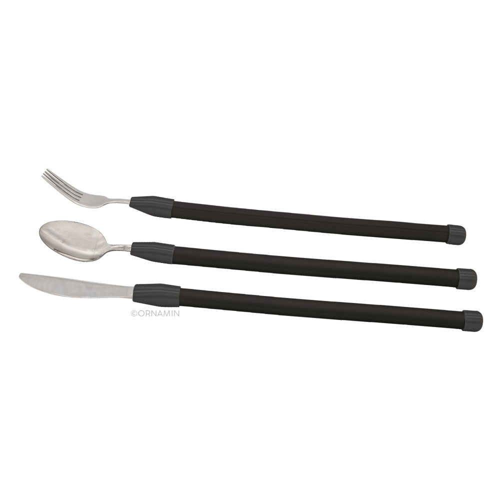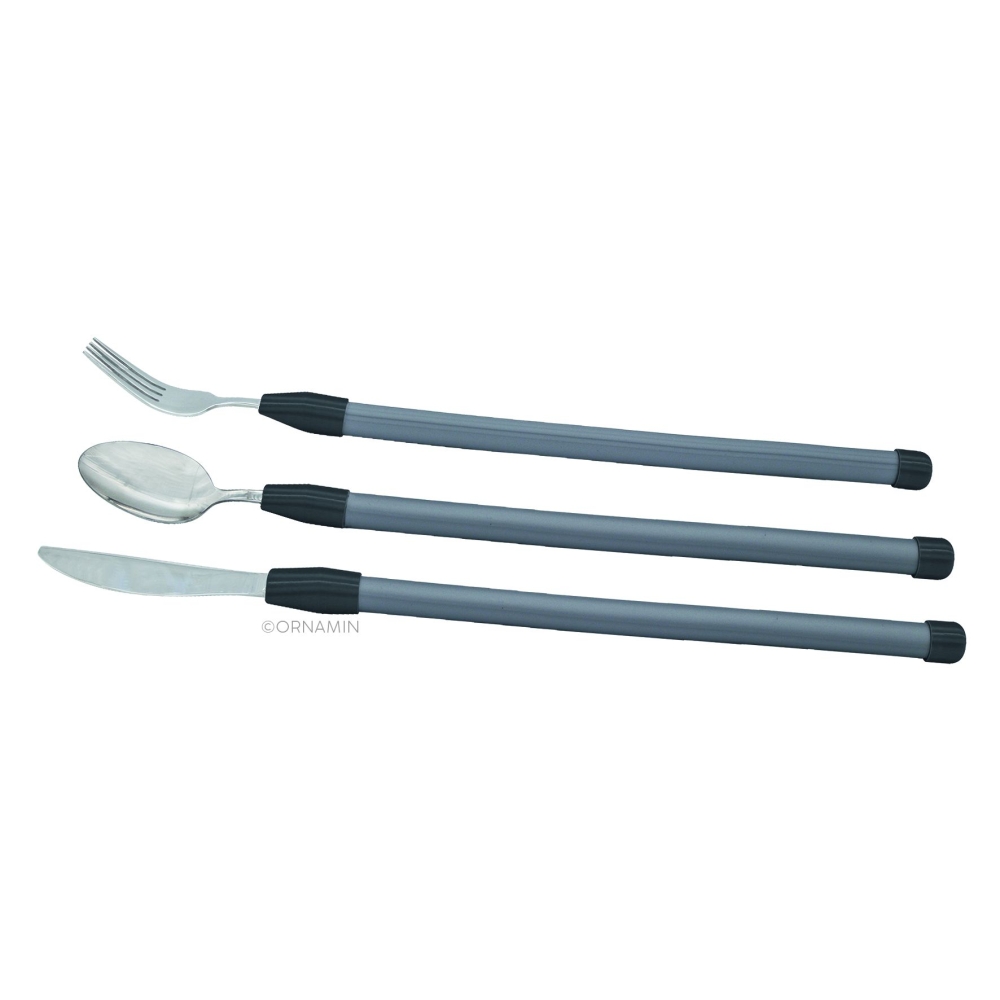 Speciaal bestek met een flexibel en verlengd handvat. Kan worden gebruikt voor elke handvorm en motoriek en is geschikt voor rechtsen linkshandigen.