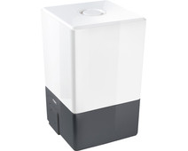 - Het apparaat neemt weinig ruimte in beslag en kan dus in elke kamer geplaatst worden. De afmetingen zijn (D x H x B) 167 mm x 28o mm x 167 mm.