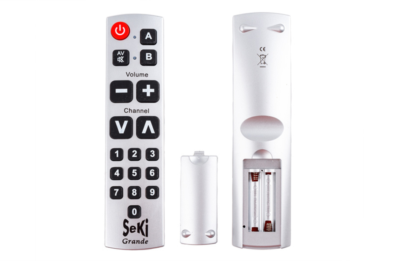 De Seki Grande afstandsbediening neemt de signalen van uw huidige infrarode afstandsbediening over voor ontvangst van TV, teletekst, decoder en audioapparatuur. Met grote voelbare toetsen met een hoog contrast. Zeer geschikt voor senioren en slechtzienden.