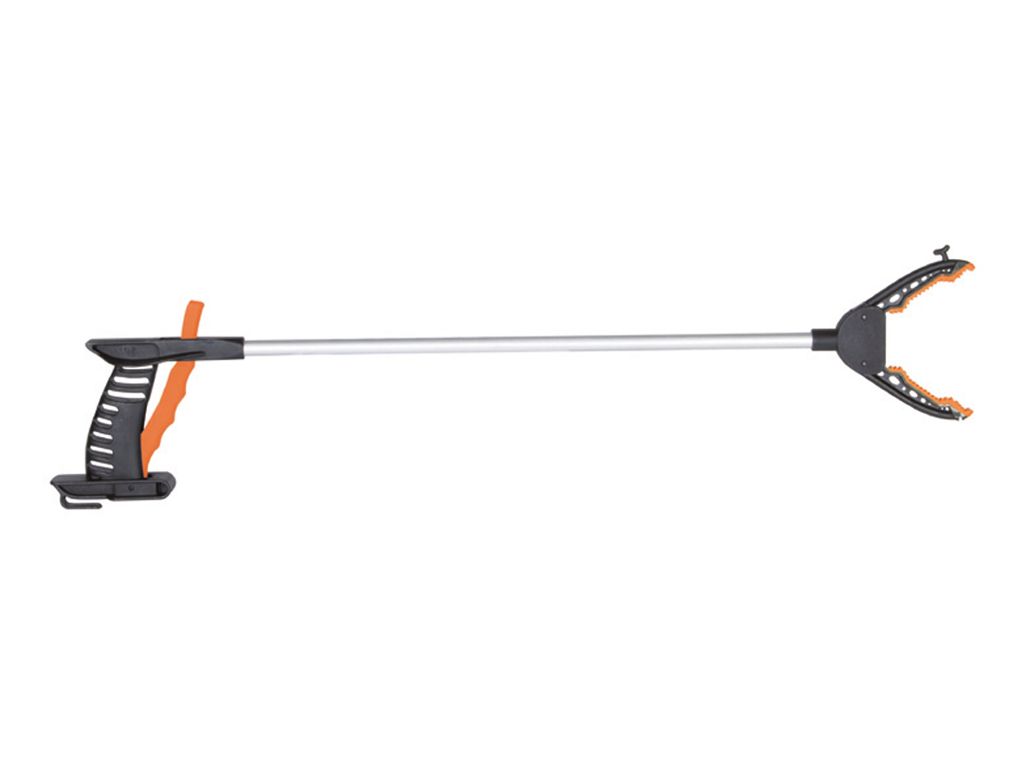 Deze grijper is een verlenging van uw arm tijdens het gebruik. Door deze handgreep wordt het dus een stuk makkelijker om iets aan te pakken dat op een afstand van u staat, u hoeft dus niet persé op te staan. De tang heeft aan het uiteinde een rubberen greep die zelfs de kleinste dingen kan vastpakken. Het is zelfs mogelijk om iets van de vloer te pakken met deze grijptang. De grijptang kunt u met beide handen bedienen omdat de handgreep twee verschillende manier van vastpakken heeft. De reikwijdte van de greep is 81cm.