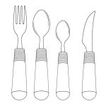 Ergonomisch ontworpen bestek met verdikte grepen, gebogen vormen of lichtgewicht materialen voor beter houvast en meer comfort bij het eten.