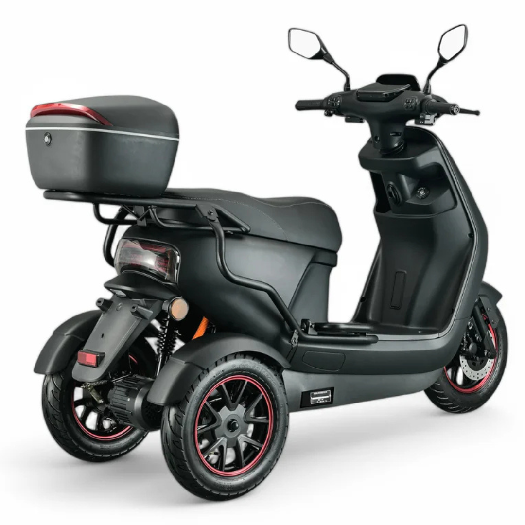 De IVA TR3 2.0 combineert kracht, comfort en stabiliteit in één moderne elektrische driewieler. Met een 1000W borstelloze elektromotor, een topsnelheid van 25 km/u en een actieradius tot 120 km (met dubbele accu) is deze scootmobiel ideaal voor iedereen die veilig, zelfstandig en zorgeloos wil blijven rijden.