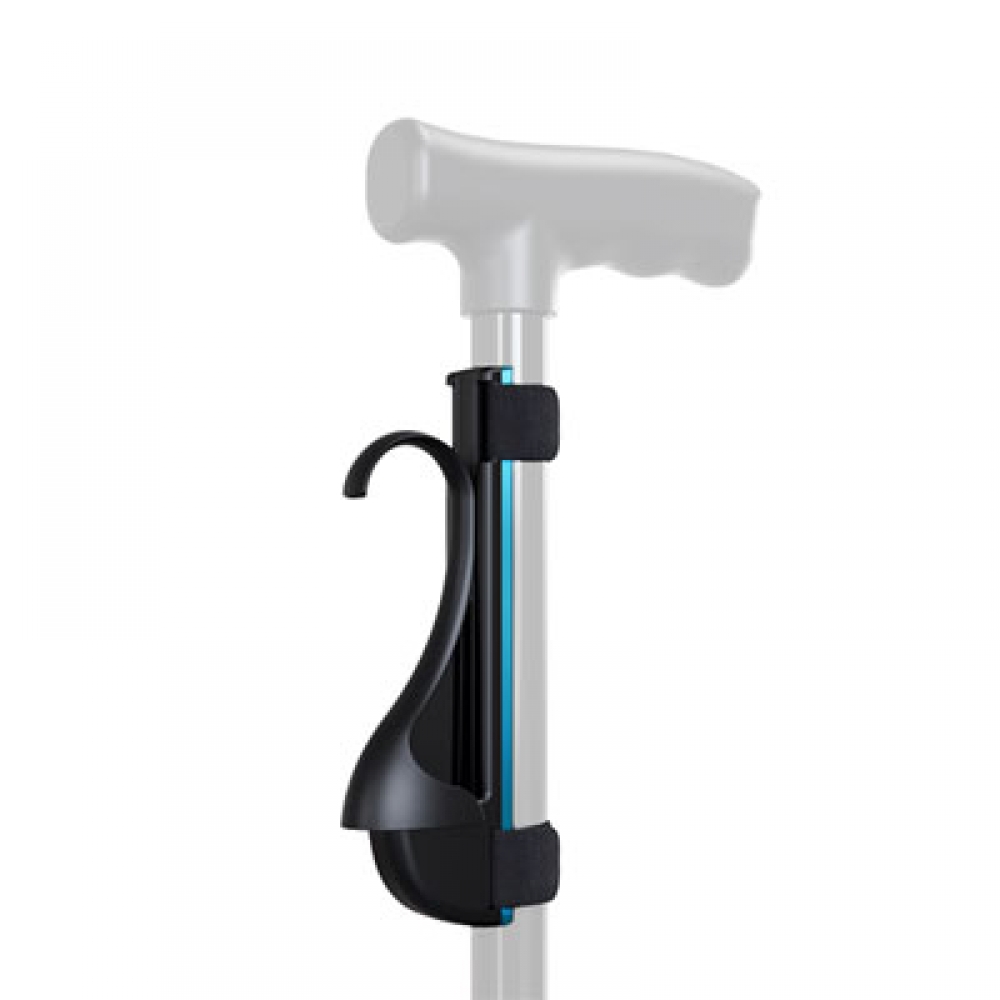 Dankzij het klittenband is de klem makkelijk en zonder gereedschap op iedere stok of kruk met een diameter van 19 tot 25 mm te monteren.