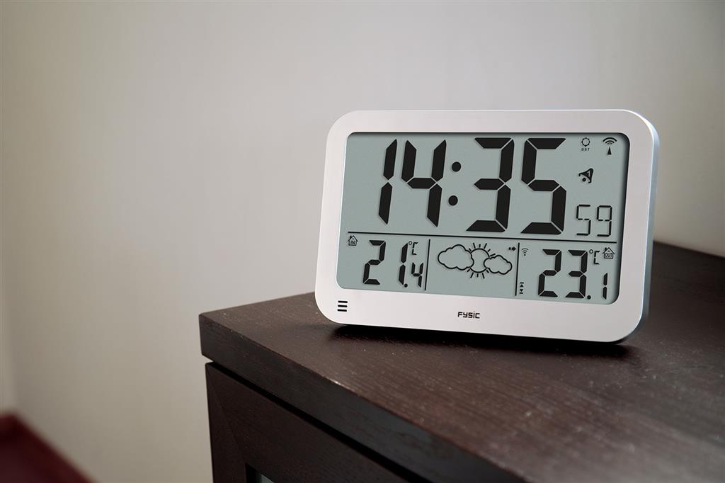 De FKW-2200 van Fysic is een digitale Jumbo klok en weerstation in 1 en wordt geleverd met een draadloze buitensensor. De FKW-2200 start direct met het signaal van de buitensensor, als beide voedingen zijn gevuld met 1,5 Volt AA-batterijen. Het display van het draadloze weerstation geeft de tijd, dag, datum, binnen- en buitentemperatuur en de weersvoorspelling weer. De weersvoorspelling wordt geanimeerd weergegeven in eenvoudig te begrijpen iconen. Aan de hand van de luchtdruk berekent het weerstation het weer voor de komende 12-24 uur. De FKW-2200 heeft vier alarm-instellingen, waardoor je bijvoorbeeld gewaarschuwd wordt als het gaat vriezen. De temperatuur kan zowel in °C als in °F worden weergegeven.