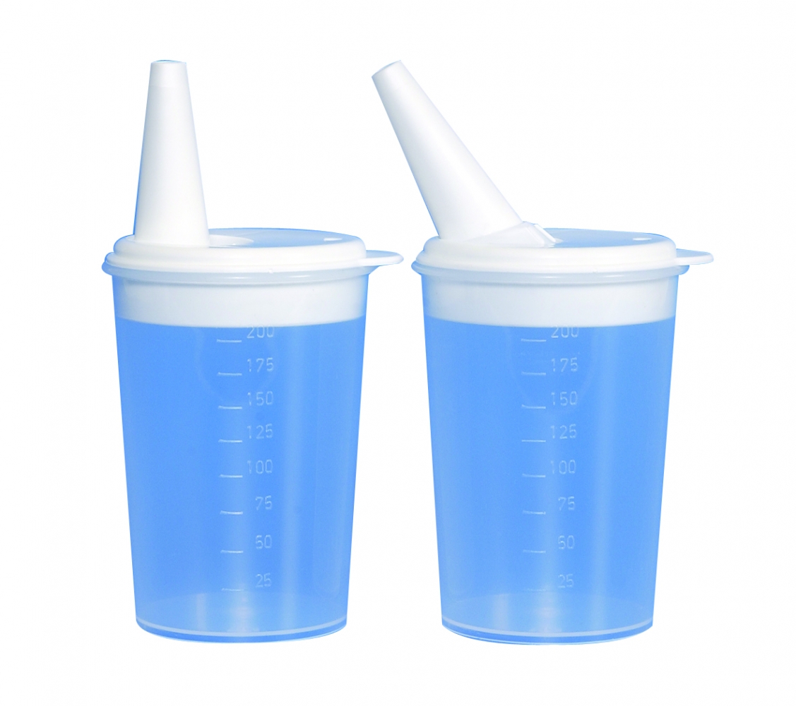 Kunststof beker met maatvoering. De deksels zijn los verkrijgbaar.