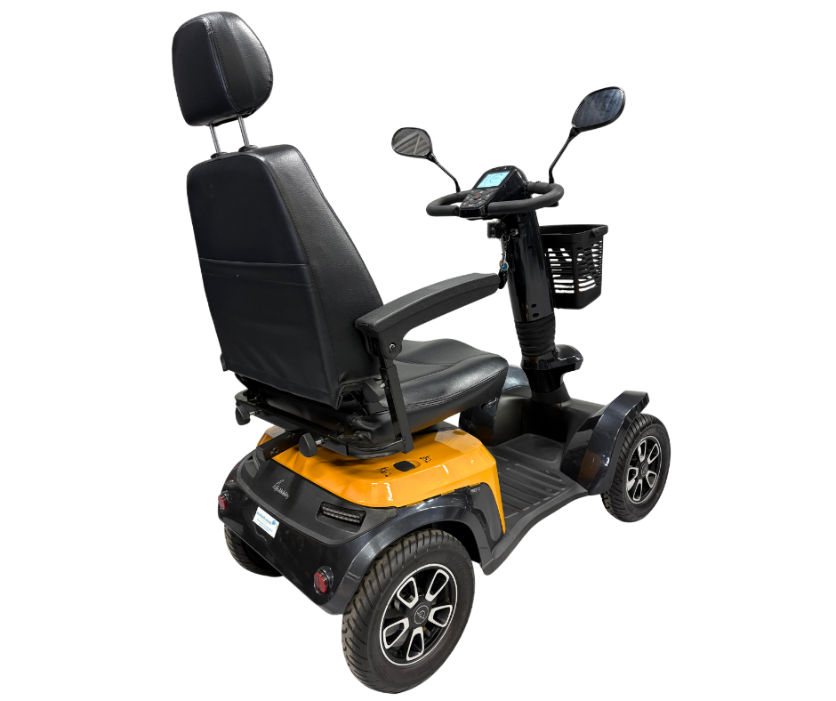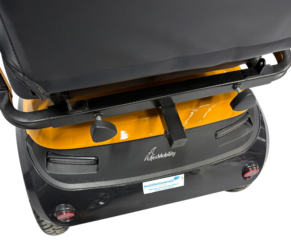 Deze Life & Mobility Presto scootmobiel uit 2022 is uitgevoerd in de kleur geel en heeft een kilometerstand van 4.180 km. De scootmobiel heeft lichte gebruikerssporen, met name enkele kleine krasjes op het voorscherm. Technisch is hij volledig in orde en direct klaar voor gebruik.
