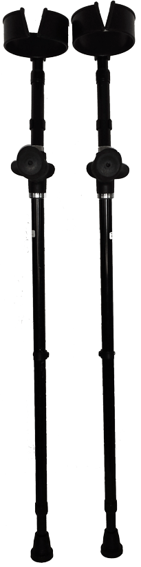 Loopkrukken van het merk Premis met anatonomisch handvat. Dit zijn voorgevormde handvaten waardoor u minder last aan uw handen krijgt. Deze krukken zijn zwart met antislip en zien er nog zeer goed uit. Ze zijn in hoogte verstelbaar en in de handvaten zit een reflector voor extra zichtbaarheid in het donker.