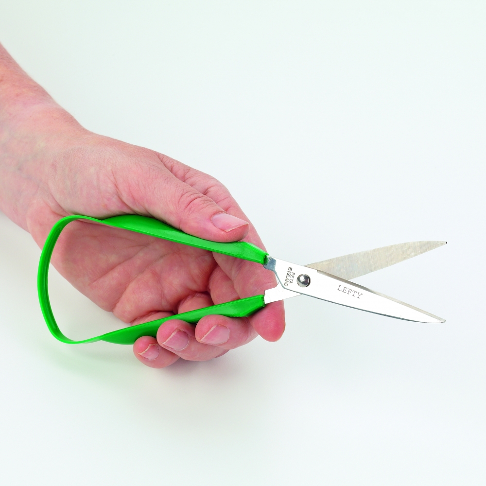 De lusschaar knipt eenvoudig door zachtjes in te knijpen en gaat vanzelf open door het zelfopenend handvat.