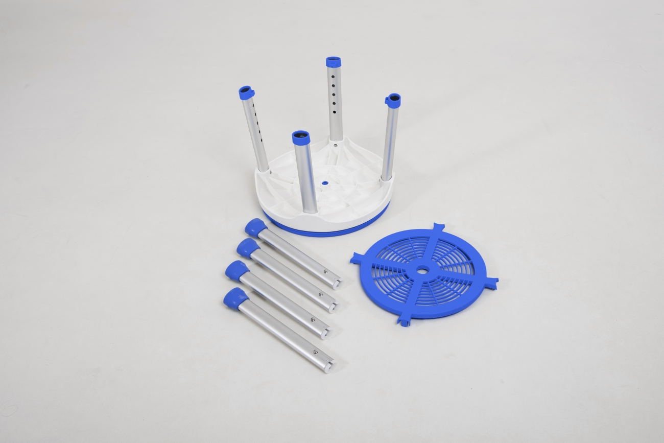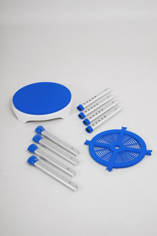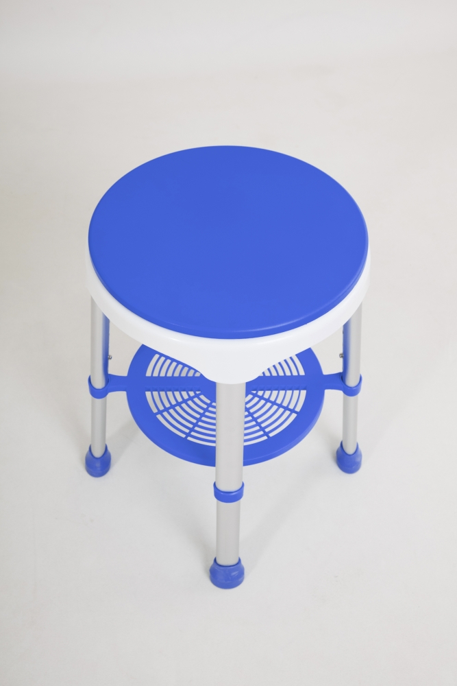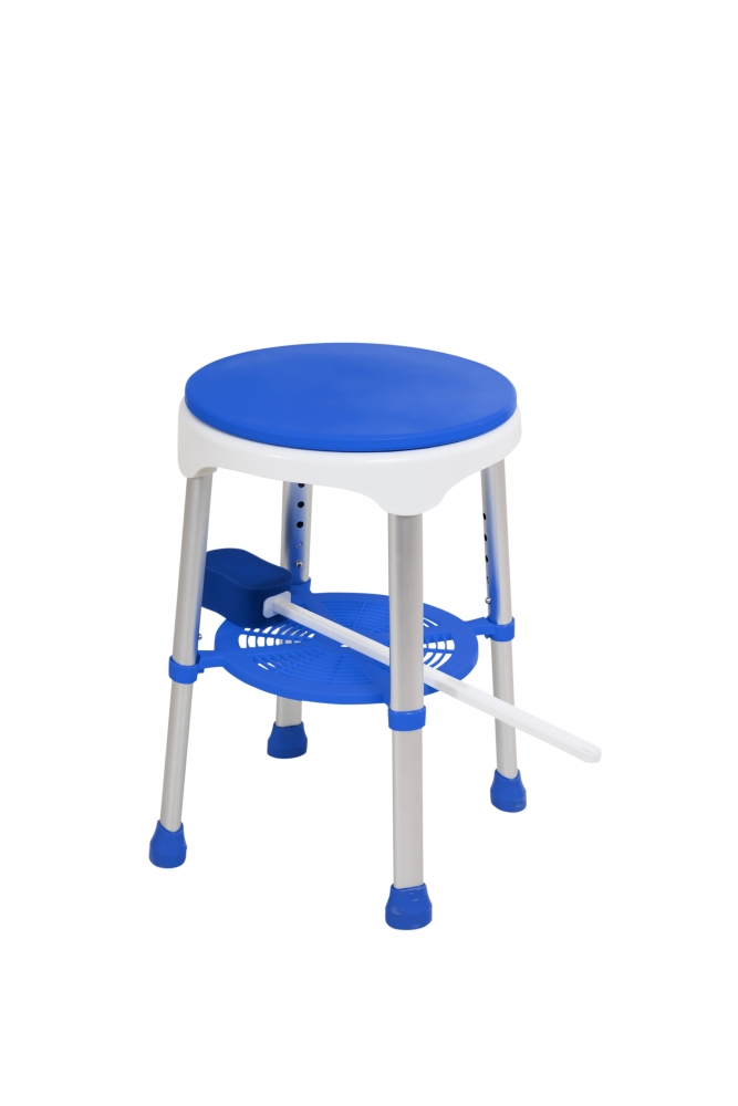 Aluminium douchekruk met een draaibare kunststof zitting.
