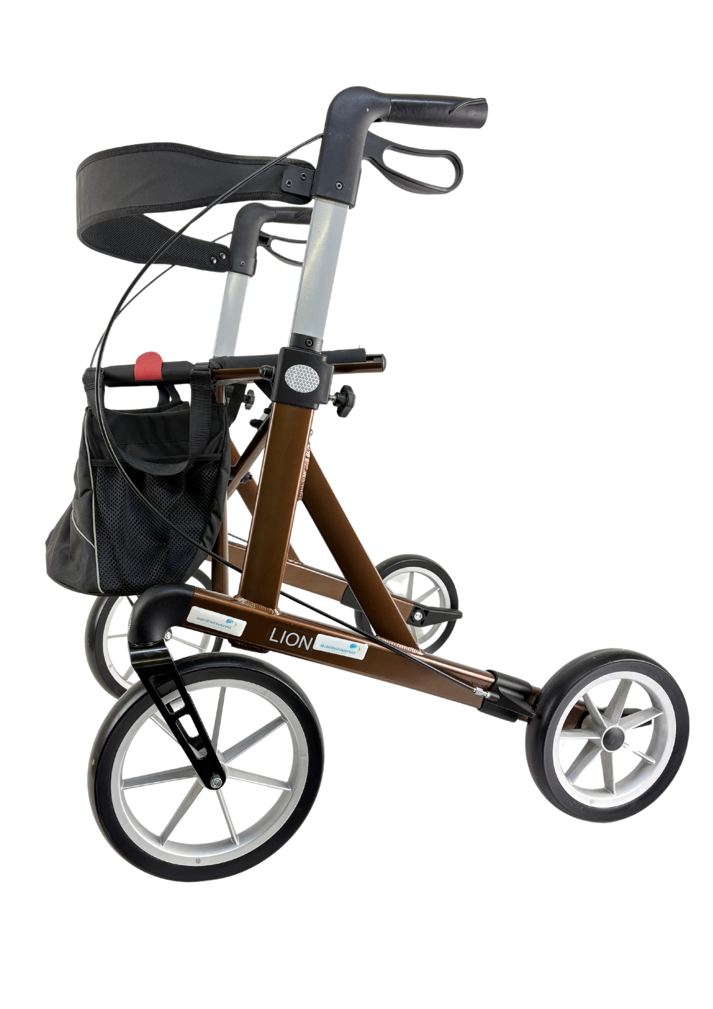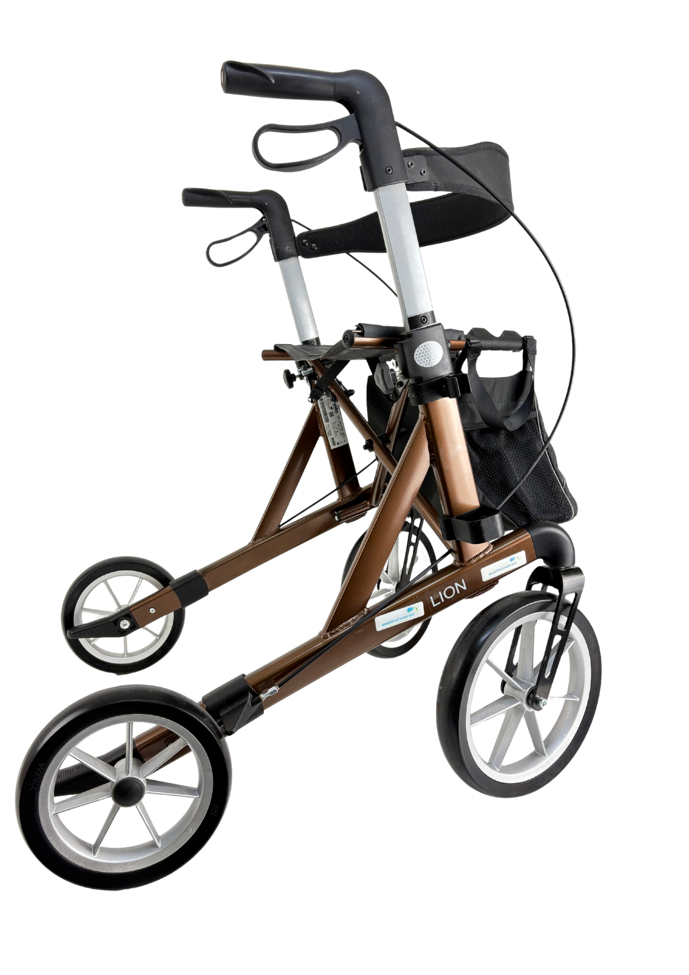 Zeer nette Mobilex Lion rollator in maat L, kleur bruin, bouwjaar 2021.