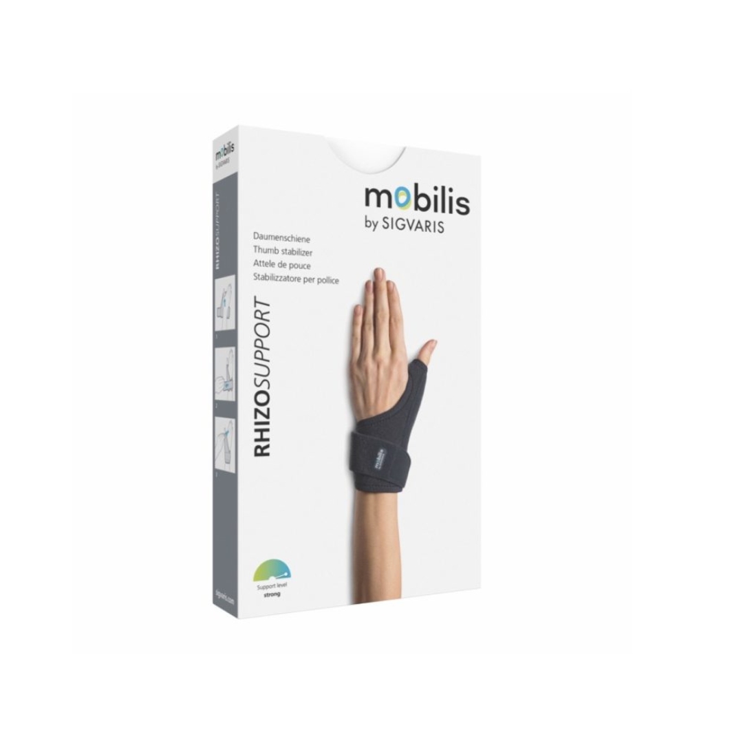De Mobilis RhizoSupport is dé oplossing voor pijnlijke duimaandoeningen zoals rhizartrose en een ski-duim (lateraal ligamentletsel). Deze duimbrace is uitgerust met twee stevige spalken die zorgen voor een sterke stabilisatie en immobilisatie van het duimgewricht.