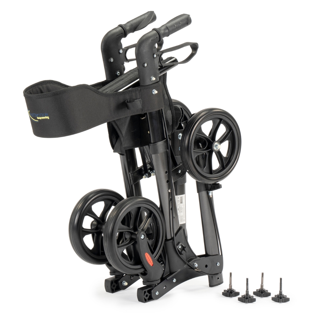 De City rollator kan eenvoudig worden opgevouwen door de zitting omhoog te trekken. Voor nog compacter opbergen (bijvoorbeeld in de auto) kunnen vier schroefknoppen worden losgedraaid, waarna de rollator verandert in een pakketje van slechts 63 x 34 x 28 cm. Hiervoor is een optionele draagtas verkrijgbaar.