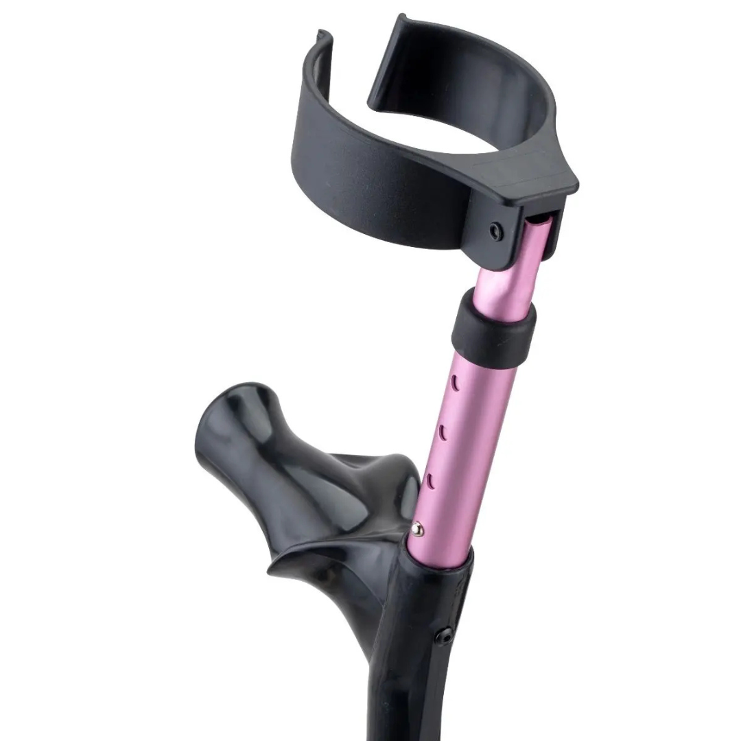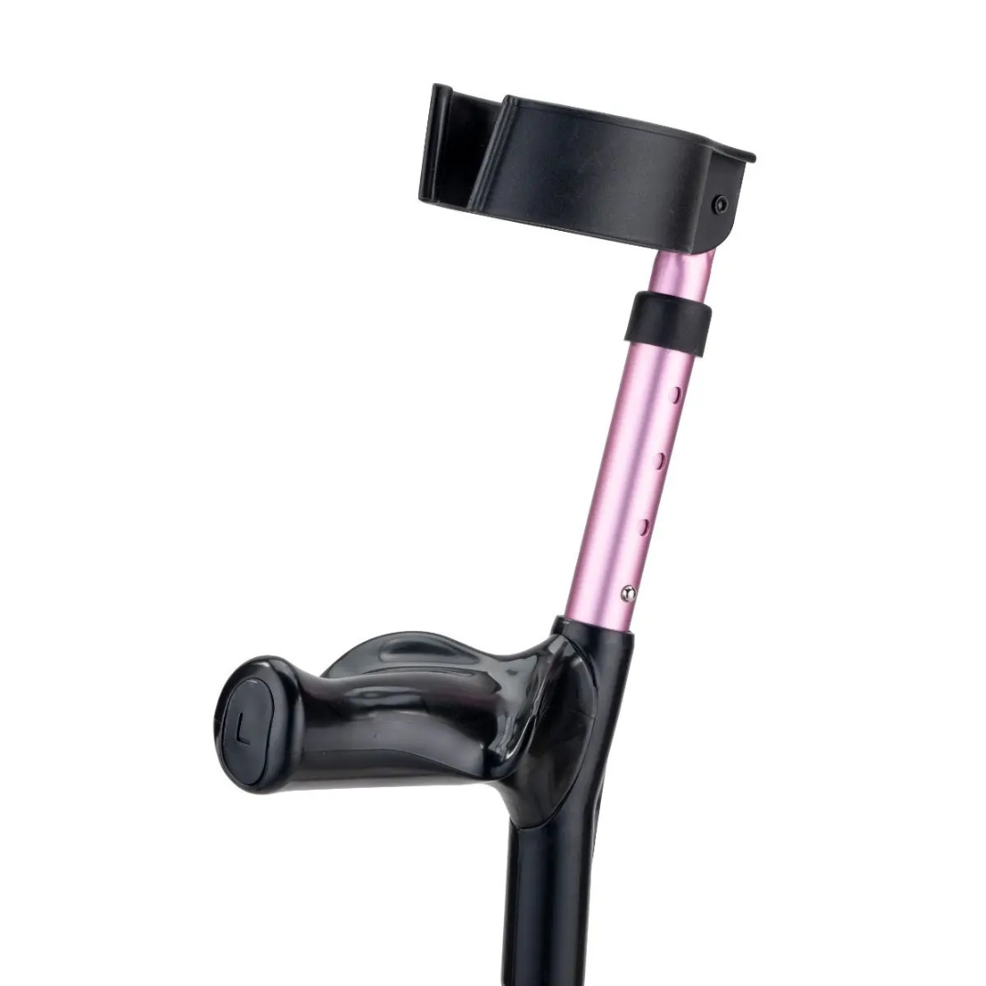 Deze uitvoering is uitgevoerd in stijlvol roze en is daarnaast verkrijgbaar in blauw, rood en zwart. De krukken worden geleverd per set: één voor de linker- en één voor de rechterarm.