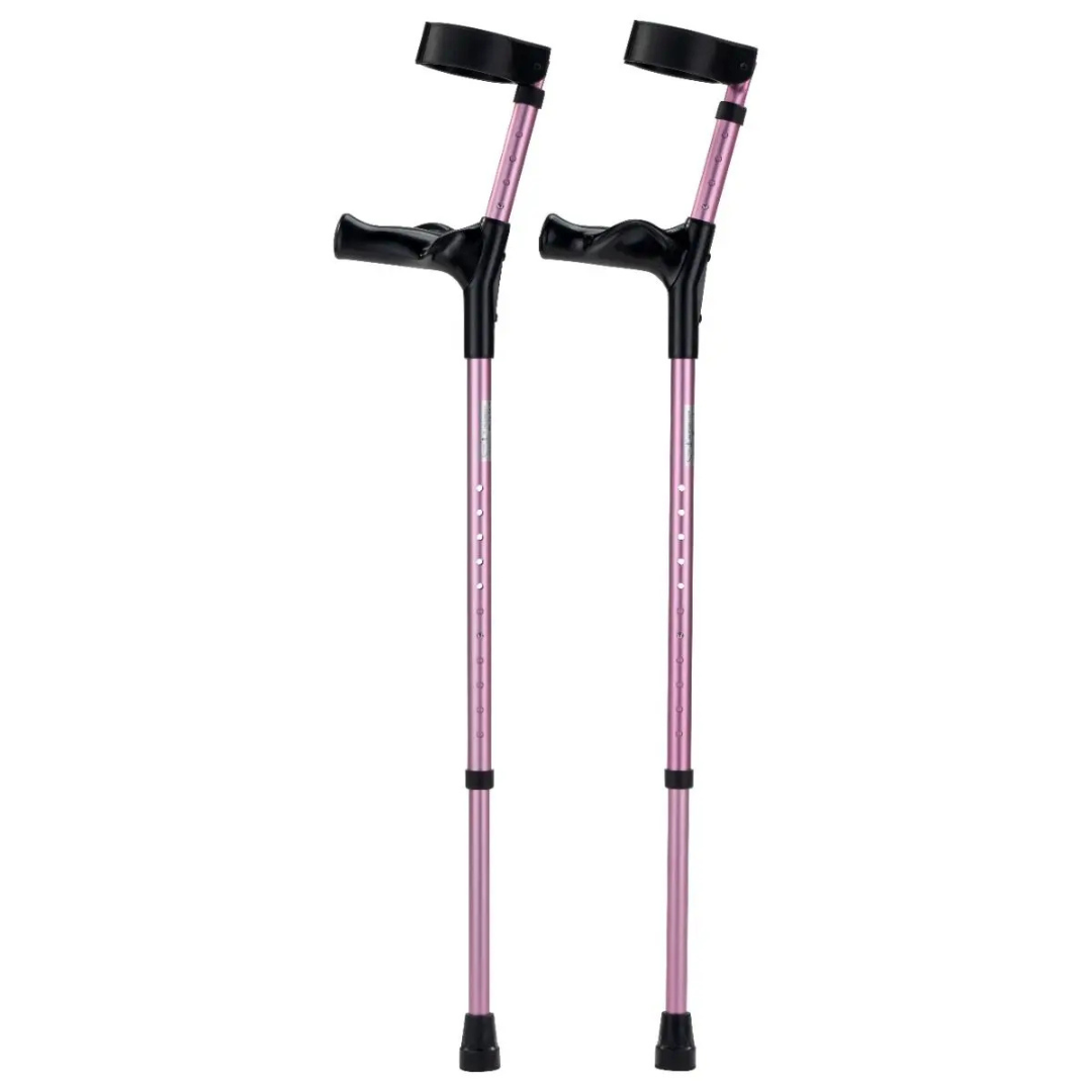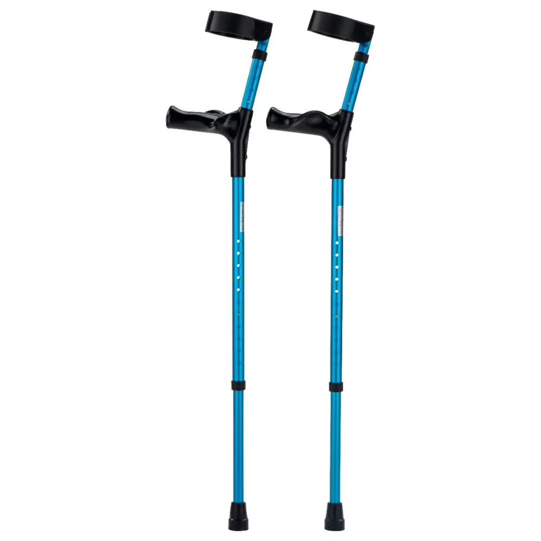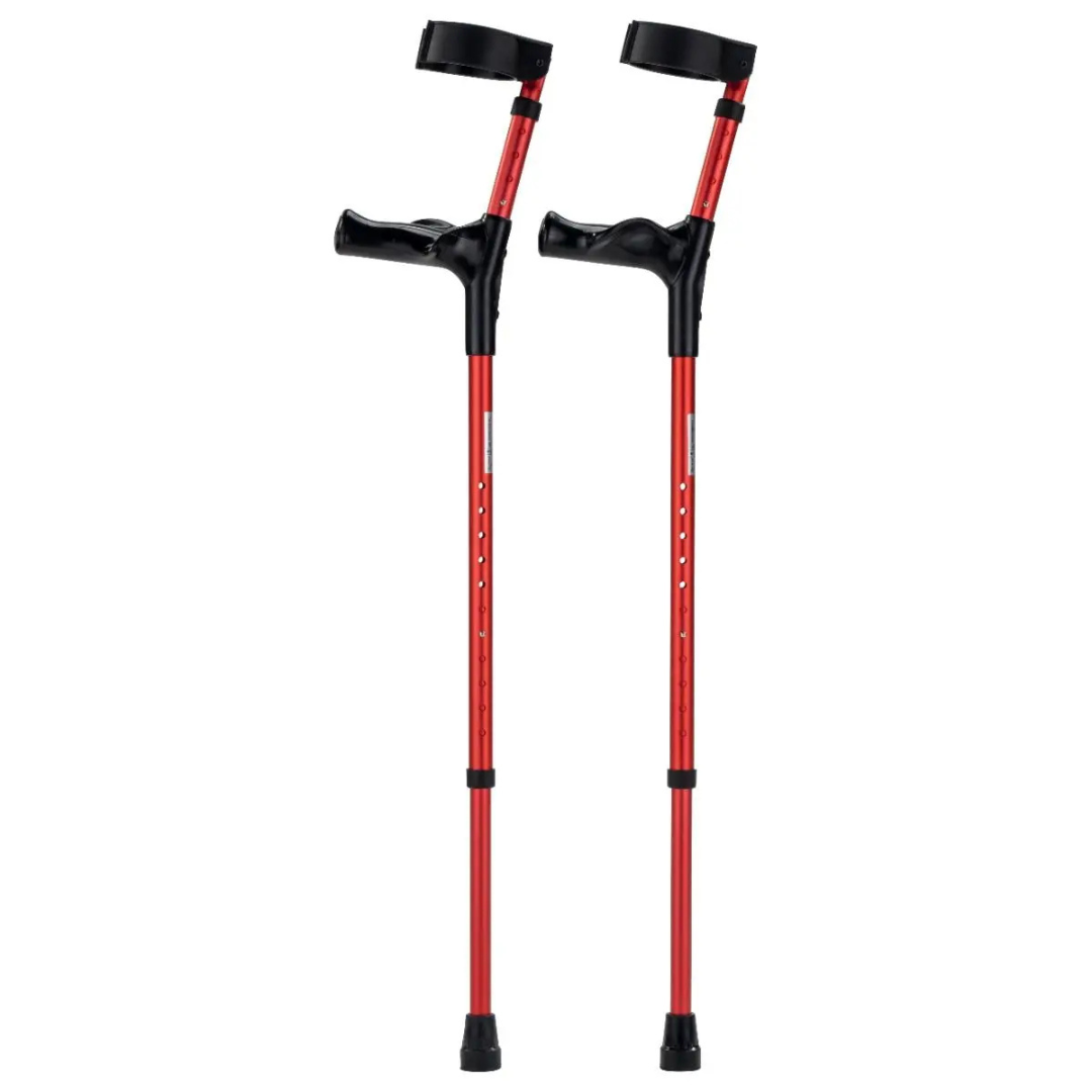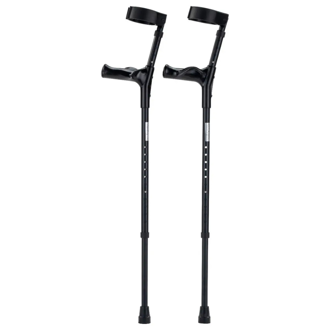 Lichtgewicht anatomische elleboogkrukken van MultiMotion met gesloten manchet en dubbel verstelbare hoogte. Comfortabel, stabiel en geschikt tot 136 kg. Set van 2.