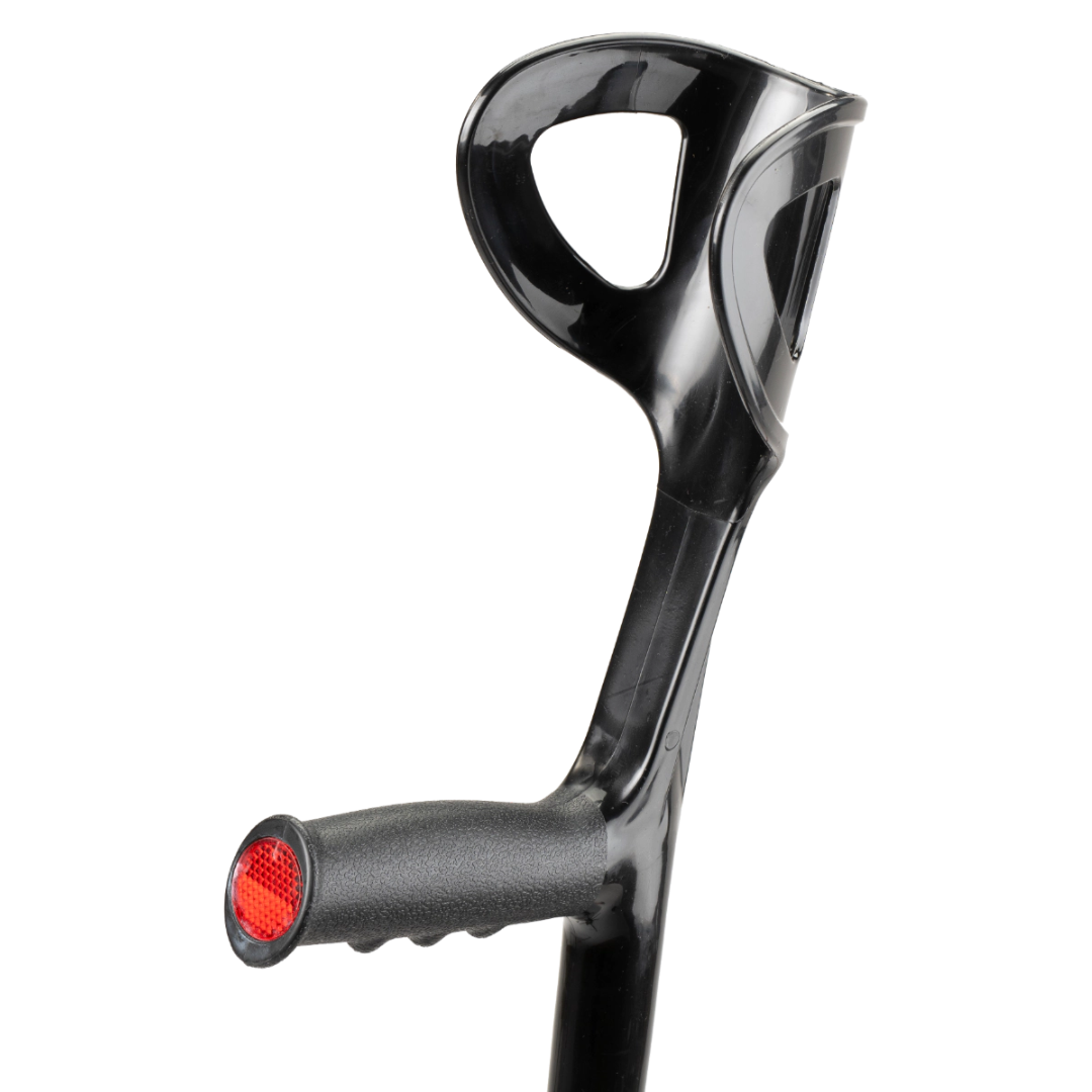 De open manchet zorgt ervoor dat de krukken niet blijven hangen aan de arm bij een val, wat het risico op letsel aanzienlijk vermindert. Dankzij de handvatten met gripmotief heeft u altijd een stevige en comfortabele houvast. De ingebouwde reflectors in de handvatten zorgen bovendien voor extra zichtbaarheid in het donker.