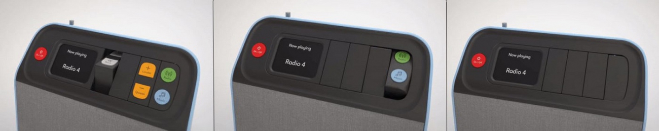 De innovatieve interface kan eenvoudig worden gepersonaliseerd voor individuele gebruikers. De grote gekleurde knoppen kunnen worden gedraaid om te verbergen of juist zichtbaar te maken. Dit vermindert verwarring bij de gebruiker.