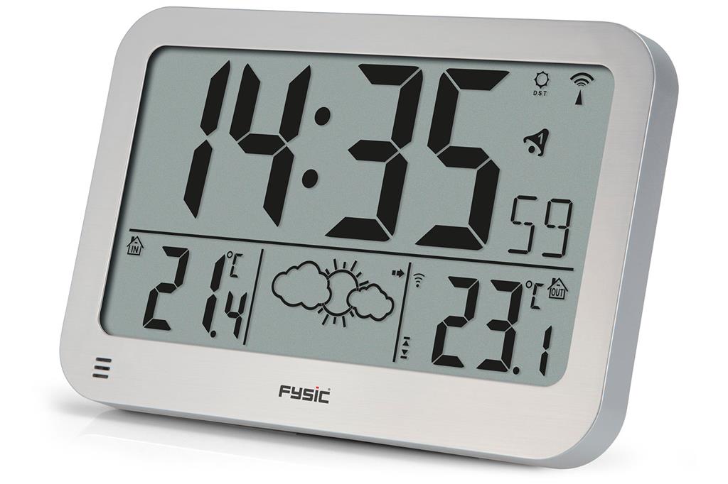 De FKW-2200 van Fysic is een digitale Jumbo klok en weerstation in 1 en wordt geleverd met een draadloze buitensensor. De FKW-2200 start direct met het signaal van de buitensensor, als beide voedingen zijn gevuld met 1,5 Volt AA-batterijen. Het display van het draadloze weerstation geeft de tijd, dag, datum, binnen- en buitentemperatuur en de weersvoorspelling weer. De weersvoorspelling wordt geanimeerd weergegeven in eenvoudig te begrijpen iconen. Aan de hand van de luchtdruk berekent het weerstation het weer voor de komende 12-24 uur. De FKW-2200 heeft vier alarm-instellingen, waardoor je bijvoorbeeld gewaarschuwd wordt als het gaat vriezen. De temperatuur kan zowel in °C als in °F worden weergegeven.