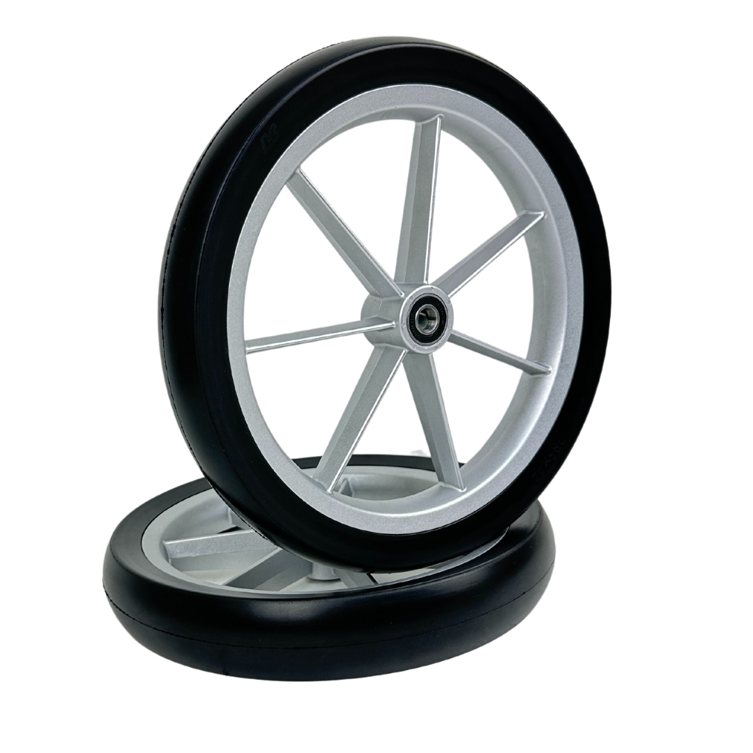 Upgrade uw Rehasense Explorer rollator met deze hoogwaardige zachte voorwielen (SOFT wielen) voor meer comfort en stabiliteit. Deze set bevat twee voorwielen met zwarte, duurzame PUR-banden en stijlvolle zilverkleurige velgen. Dankzij de schokabsorberende eigenschappen zijn deze wielen ideaal voor gebruik op oneffen terrein en in buitenomgevingen.