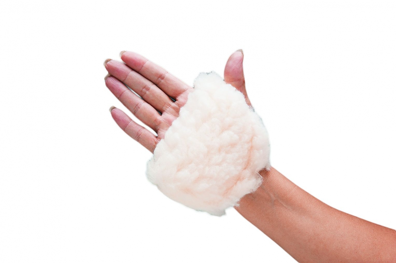 Deze zachte handpalmbeschermer is gemaakt van foam bekleed met een synthetische schapenvacht.