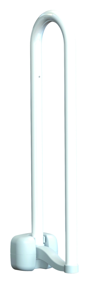Opklapbare toiletbeugel voor extra ondersteuning rondom het toilet. Gemaakt van gecoat staal. In opgeklapte verticale stand vergrendelt de beugel. Wordt op vier punten aan de muur bevestigd. Voorzien van kunststof cover voor een verborgen bevestiging. Diameter buis 3,2 cm. Montagemateriaal niet inbegrepen.