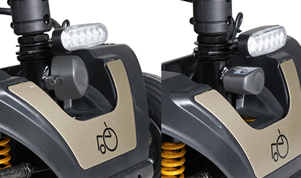 De Excel iGo kenmerkt zich door onder andere een uitstekende vering, zowel aan de voorzijde als ook de achterzijde. Tevens zijn een 4-tal luchtbanden van 8 inch gemonteerd voor nog meer demping.