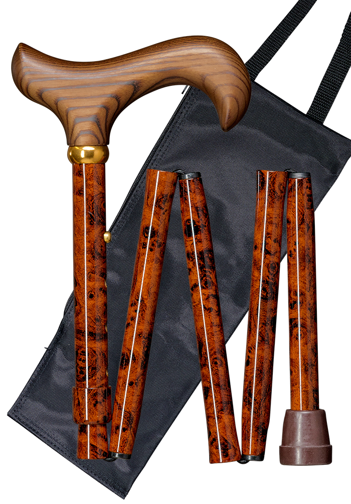 Ervaar de perfecte combinatie van stijl en comfort met deze opvouwbare aluminium wandelstok van het Duitse topmerk Gastrock. De wandelstok is voorzien van een DERBY-handgreep van hardhout en de hoogte is eenvoudig verstelbaar via de 4-traps drukknophoogteverstelling. Met een wortelhouten decor met glanzende afwerking en een verfijnde messing ring in goudkleur, straalt deze wandelstok elegantie uit. Daarnaast is de wandelstok opvouwbaar in 5 delen, waardoor hij slechts 25 cm groot is wanneer opgevouwen. De rubberen stootdop zorgt voor extra stabiliteit en bescherming. Wandelen wordt nu moeiteloos en elegant met deze hoogwaardige wandelstok. Geniet van de ondersteuning die u verdient, met een vleugje stijl.