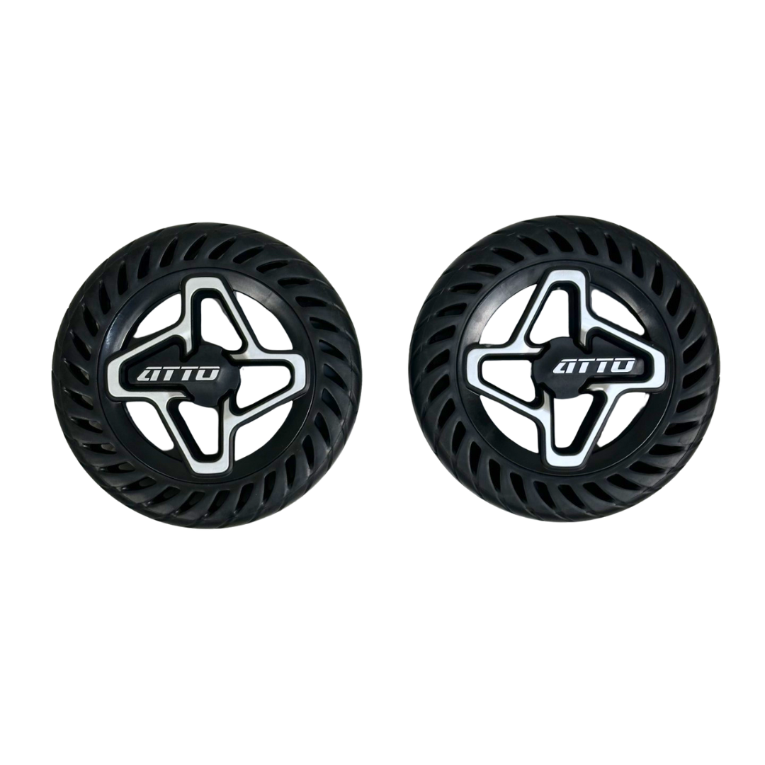 Zijn de achterwielen van uw MovingLife Atto Sport versleten of beschadigd? Met deze originele set achterwielen brengt u uw scootmobiel weer volledig in optimale staat. De wielen zijn speciaal ontworpen voor de Atto Sport en sluiten perfect aan op het bestaande ontwerp en rijmechanisme.