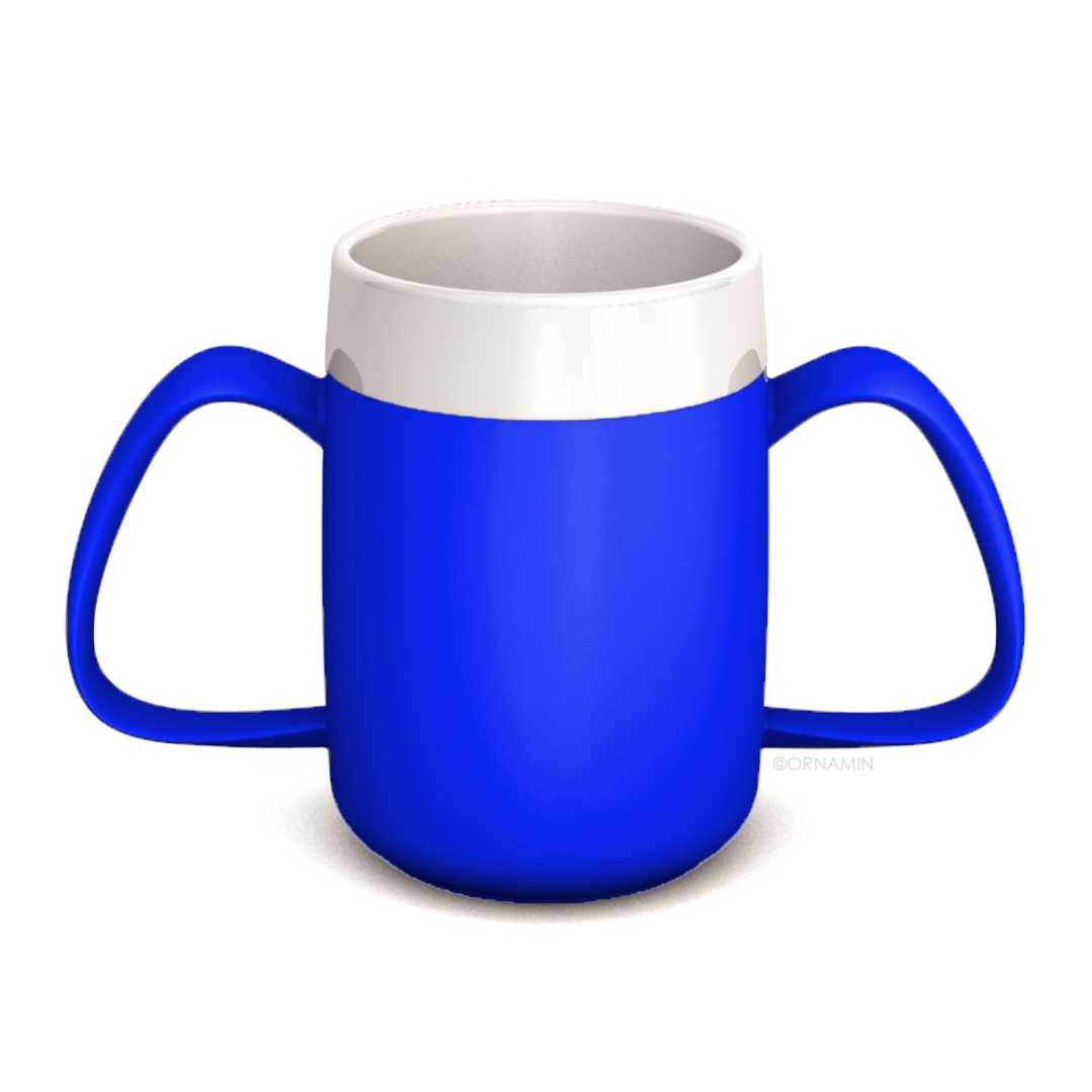 De Ornamin Conische Ergobeker in Blauw (160 ml) bevordert zelfstandig drinken door een uniek ontwerp dat veiligheid en gebruiksgemak combineert. Dankzij de conische vorm van de binnenzijde kunt u drinken zonder uw hoofd naar achteren te kantelen, wat extra comfort biedt voor mensen met beperkte nek- of hoofdbeweging. De beker heeft twee grote, ergonomisch gevormde handgrepen voor een stevige grip, terwijl de thermofunctie warme dranken warm en koude dranken koud houdt.