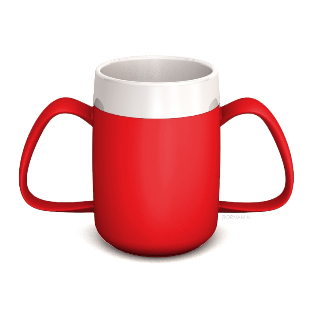 De Ornamin Conische Ergobeker in Rood (160 ml) bevordert zelfstandig drinken door een uniek ontwerp dat veiligheid en gebruiksgemak combineert. Dankzij de conische vorm van de binnenzijde kunt u drinken zonder uw hoofd naar achteren te kantelen, wat extra comfort biedt voor mensen met beperkte nek- of hoofdbeweging. De beker heeft twee grote, ergonomisch gevormde handgrepen voor een stevige grip, terwijl de thermofunctie warme dranken warm en koude dranken koud houdt.