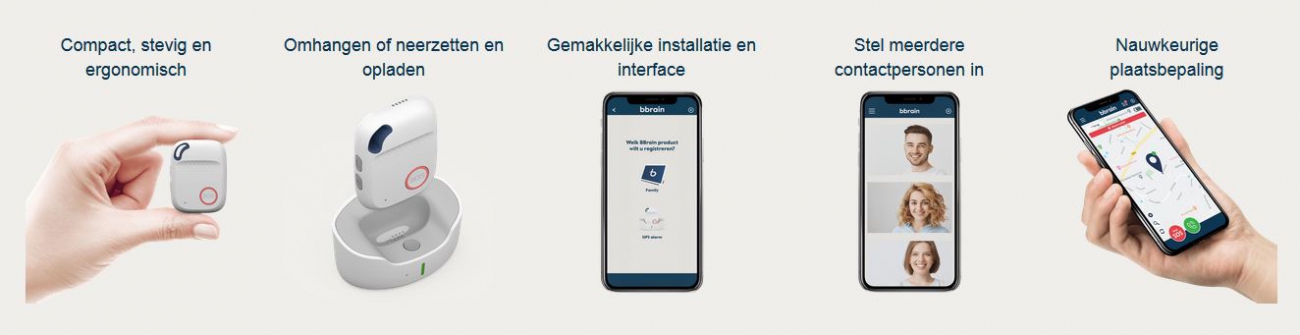 De BBrain personenalarmering draagt bij aan een veilige en zelfstandige thuissituatie. Het alarm kan geactiveerd worden door op de SOS knop te drukken. De contactpersonen ontvangen een alarmbericht en leggen vervolgens contact met de gebruiker van de personenalarmering. De locatie van de gebruiker wordt doorgegeven aan de contactpersonen via de BBrain App zodat deze gepaste hulp kunnen bieden en/of in kunnen schakelen. De contactpersoon kan zelf bepalen of deze in de gelegenheid is om hulp te bieden of ervoor kiezen het alarm door te schuiven naar een andere contactpersoon.