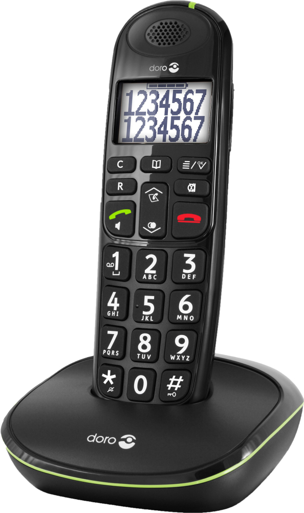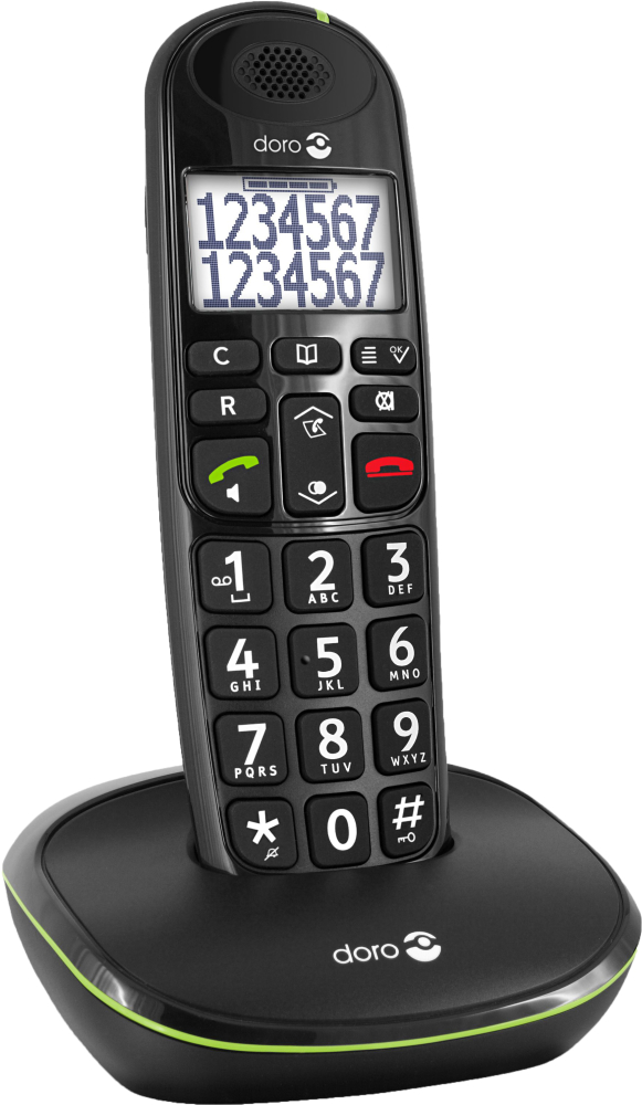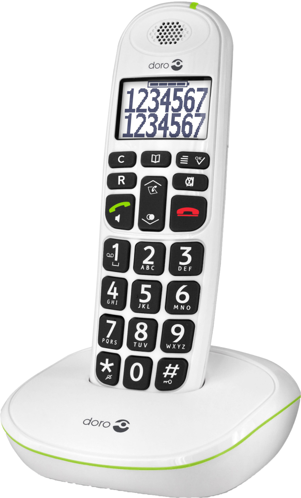 De Doro PhoneEasy® 110 is een zeer gemakkelijke draadloze telefoon voor slechtzienden. Het verlichte scherm heeft een ultrahoog contrast en geeft de volledige namen en nummers weer, zonder rollende tekst. Met de grote, sprekende cijfertoetsen wordt het gemakkelijker om nummers te kiezen en de Doro TrueSound kwaliteit garandeert een goed, helder geluid. De telefoon heeft ook een luidspreker met hoog volume.