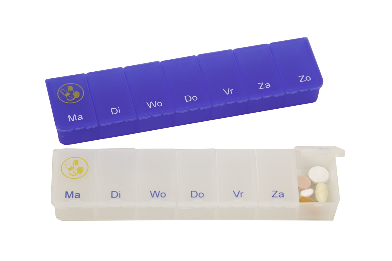Alle pillendozen zijn verkrijgbaar in het Nederlands, Engels, Frans en Spaans.