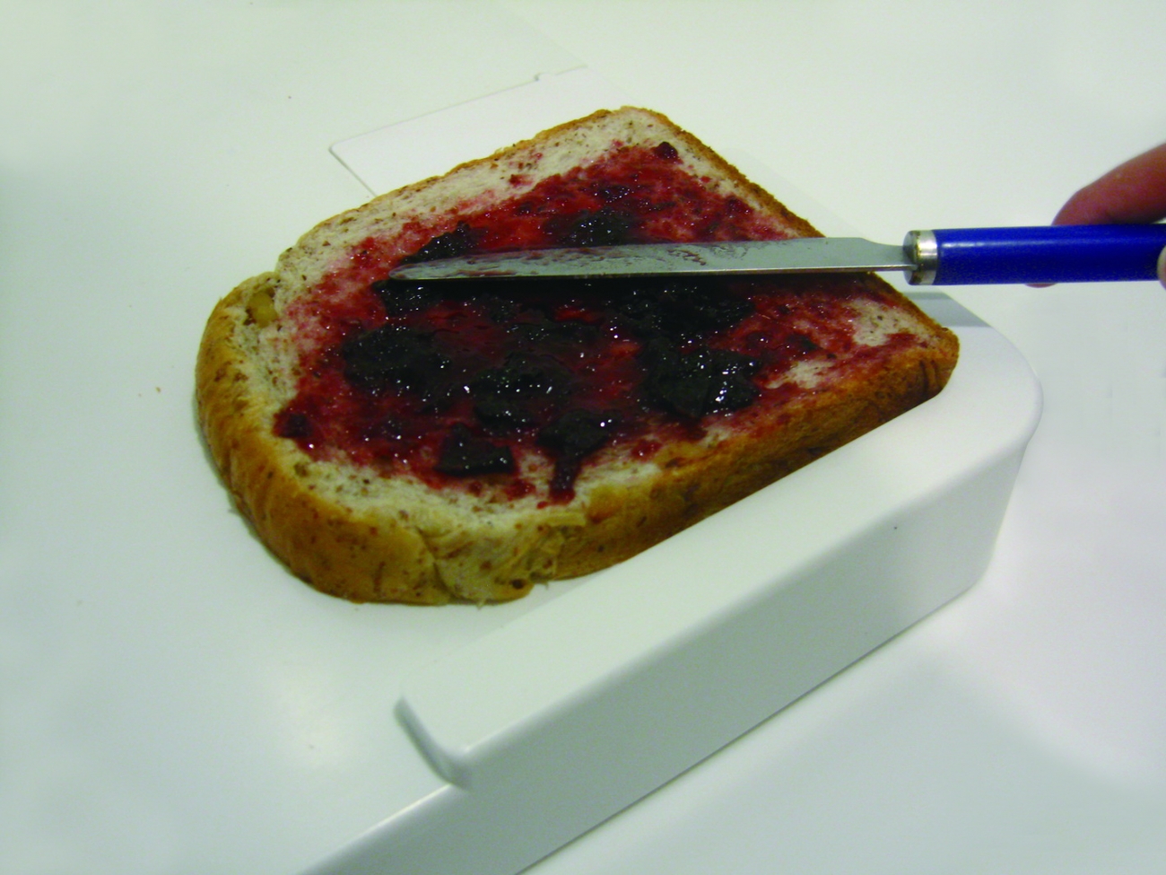 - In de verhoogde hoek kan het brood niet verschuiven wanneer het besmeerd wordt.