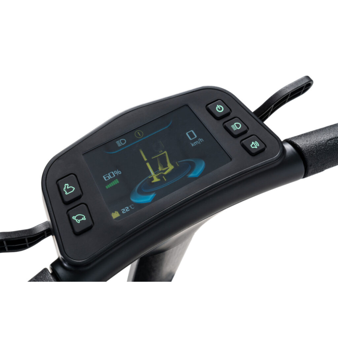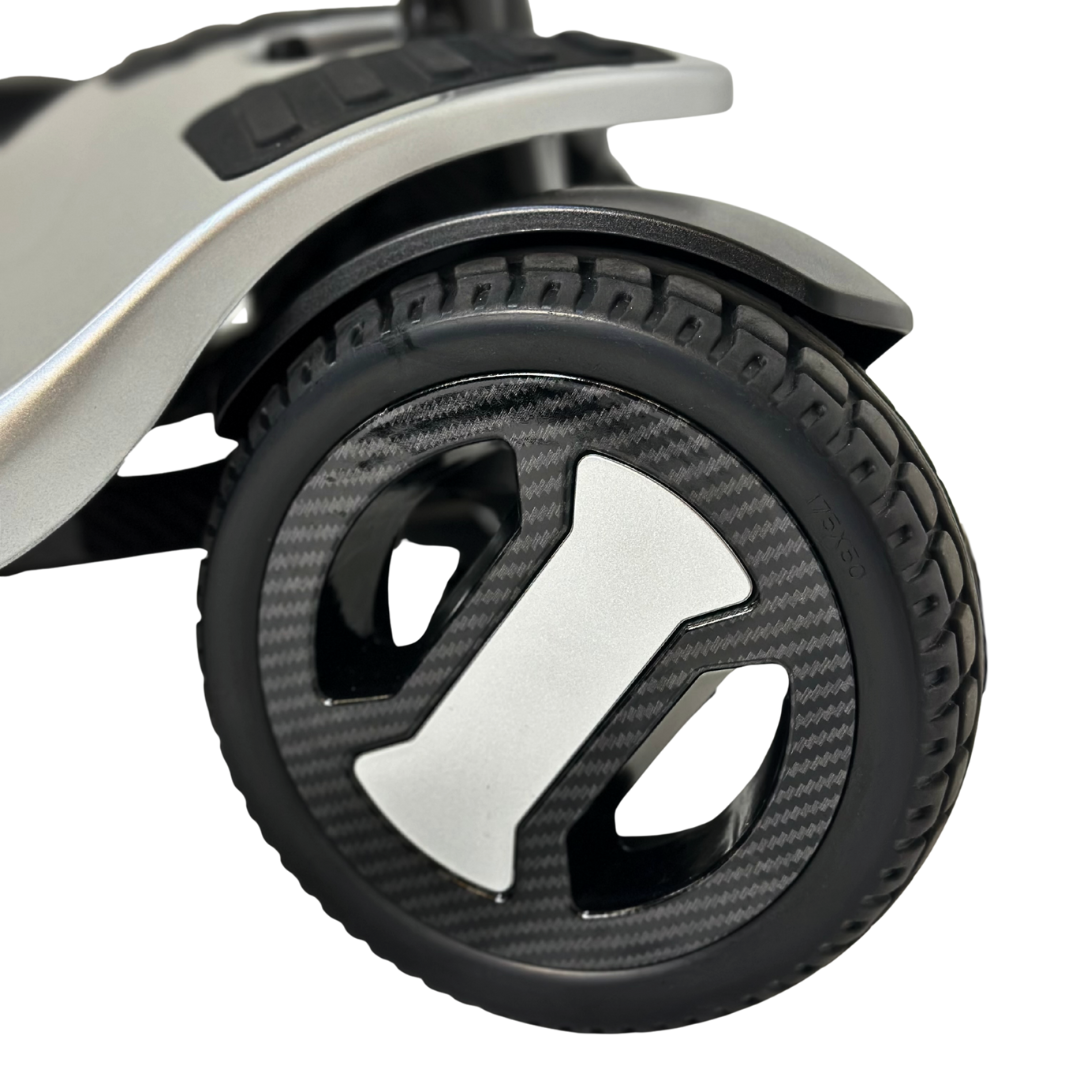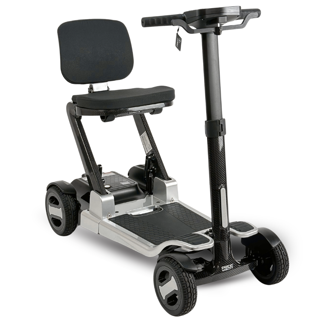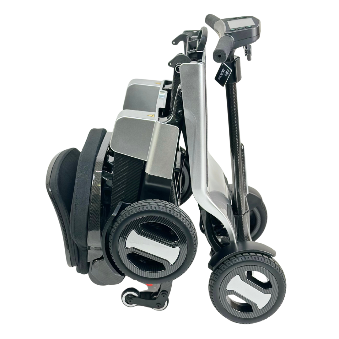 De Pride Go Go Carbon is een revolutionaire compacte scootmobiel die mobiliteit naar een nieuw niveau tilt. Dankzij het volledig carbonvezel frame is deze scooter uitzonderlijk licht, sterk en perfect ontworpen voor moderne reizigers. Met een totaalgewicht van slechts 15,87 kg (zonder accu) behoort de Go Go Carbon tot de lichtste vouwscooters ter wereld—zonder in te leveren op stabiliteit, comfort of prestaties.