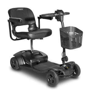 De Pride GoGo Ultra 4-wiel scootmobiel in mat zwart is een compacte en demontabele reis scootmobiel, ideaal om mee te nemen in auto, bus of vliegtuig.