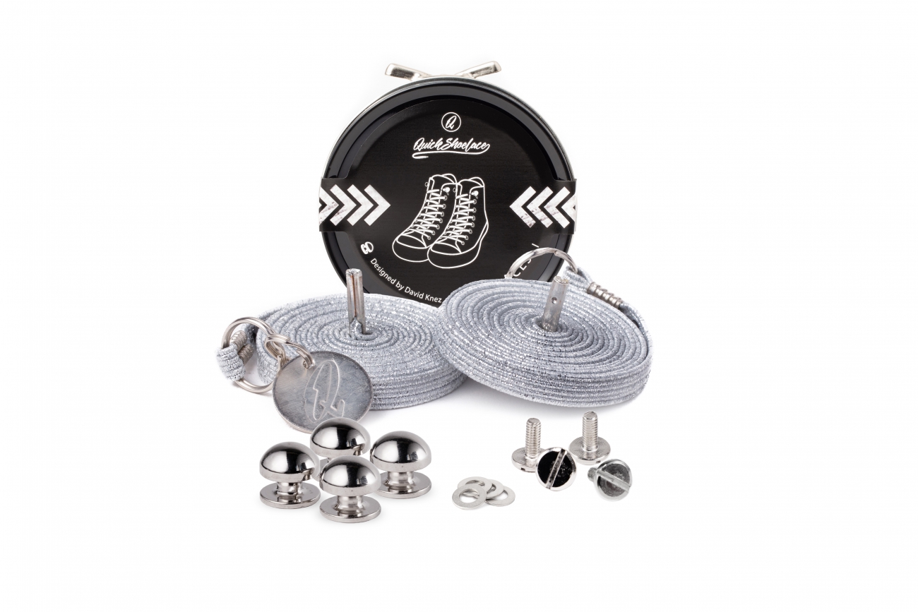 Inhoud: Metalen blikje (schoensmeer) met 1 paar Quickshoelaces.