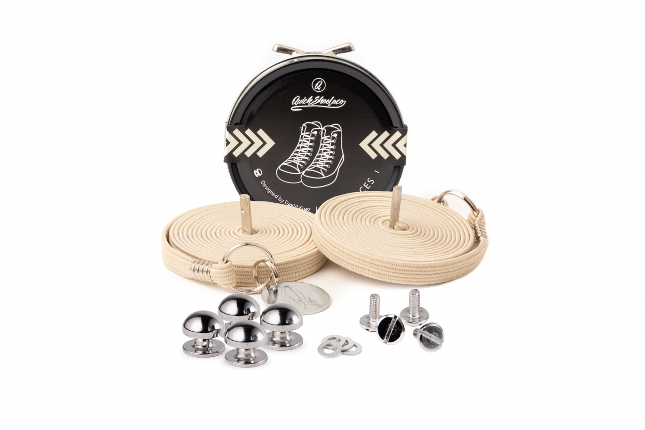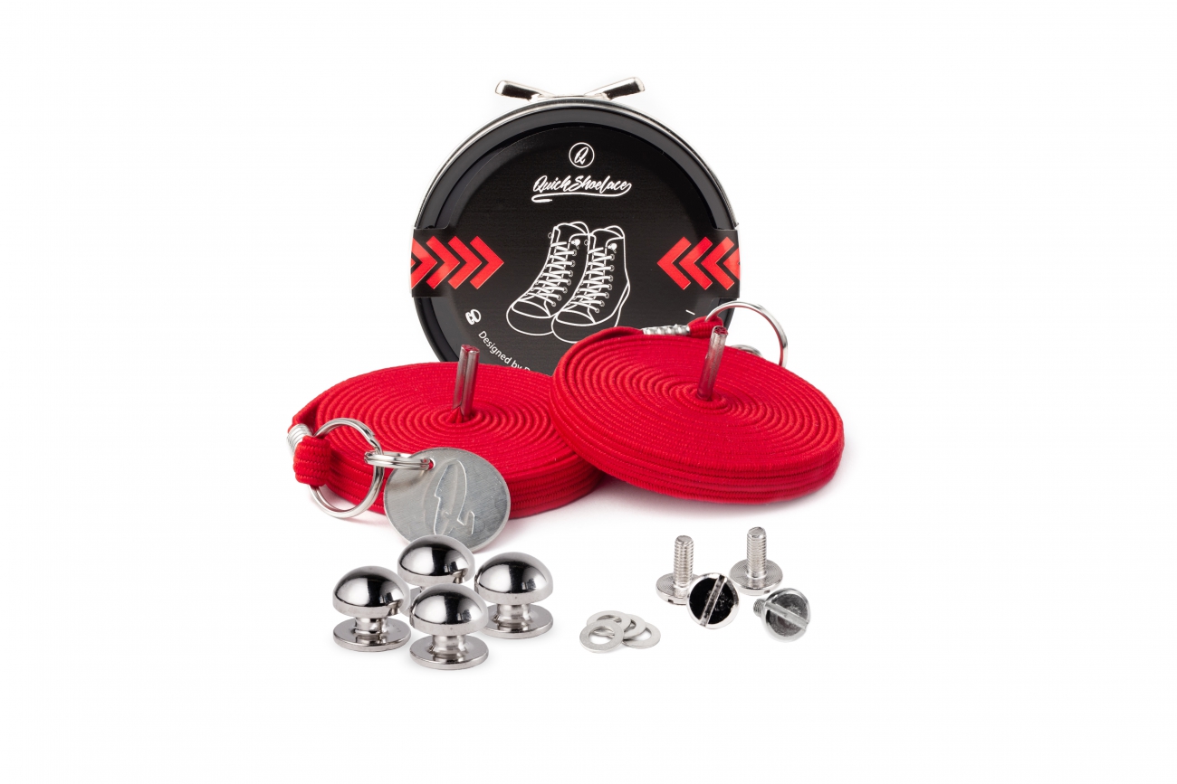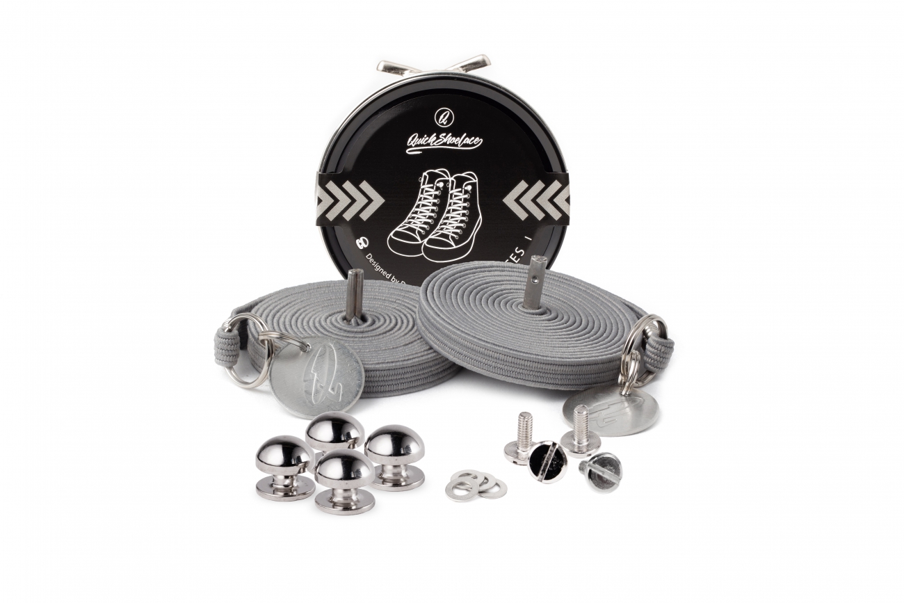 Inhoud: Metalen blikje (schoensmeer) met 1 paar Quickshoelaces.
