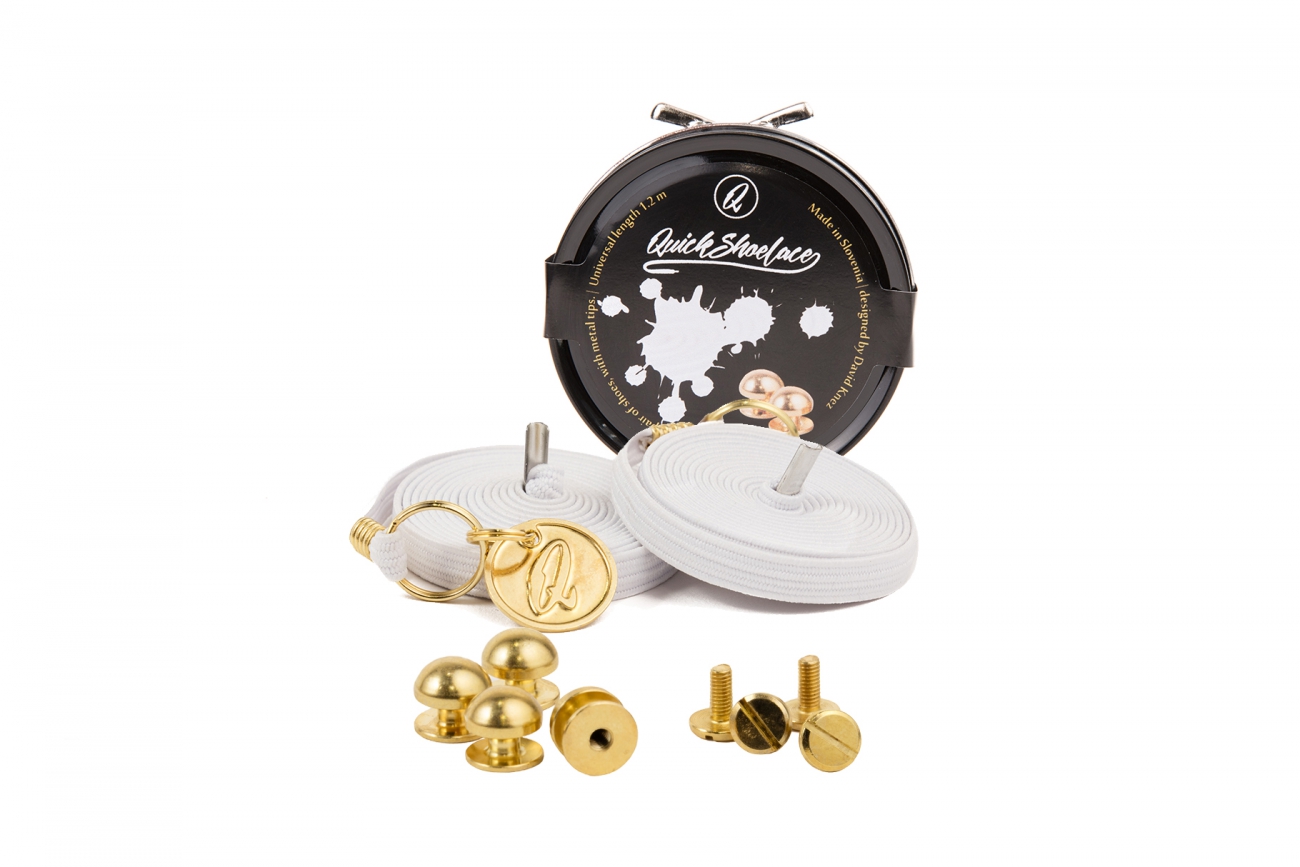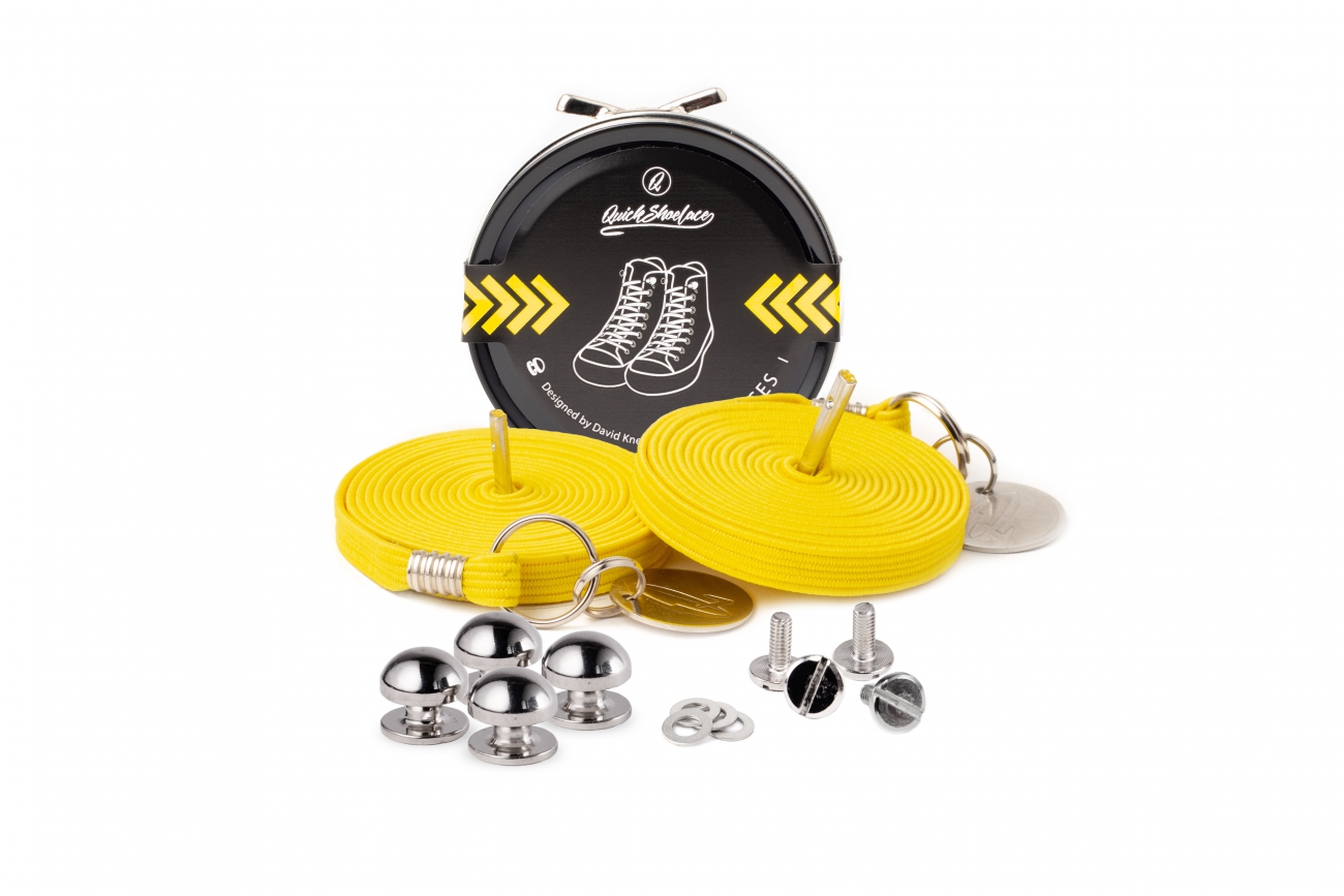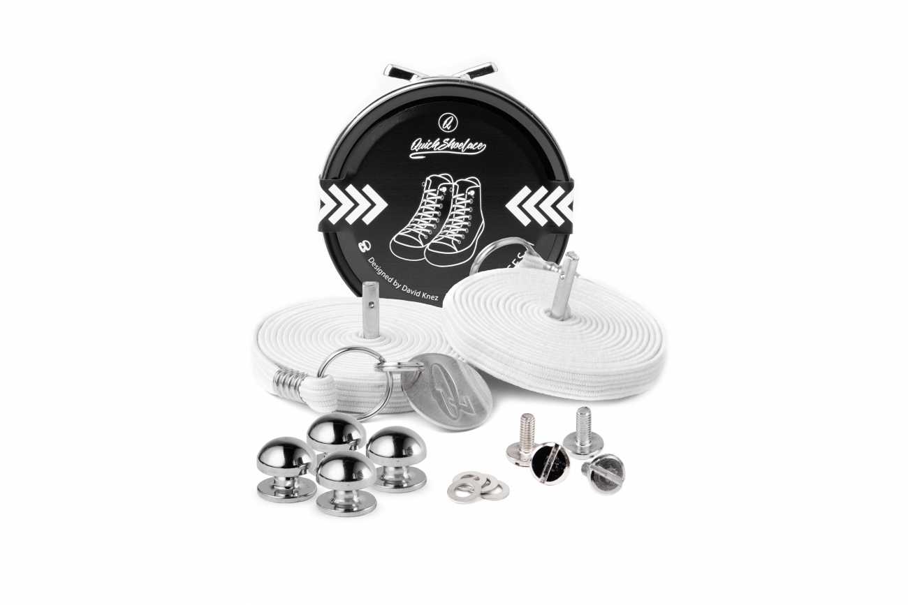 Inhoud: Metalen blikje (schoensmeer) met 1 paar Quickshoelaces.
